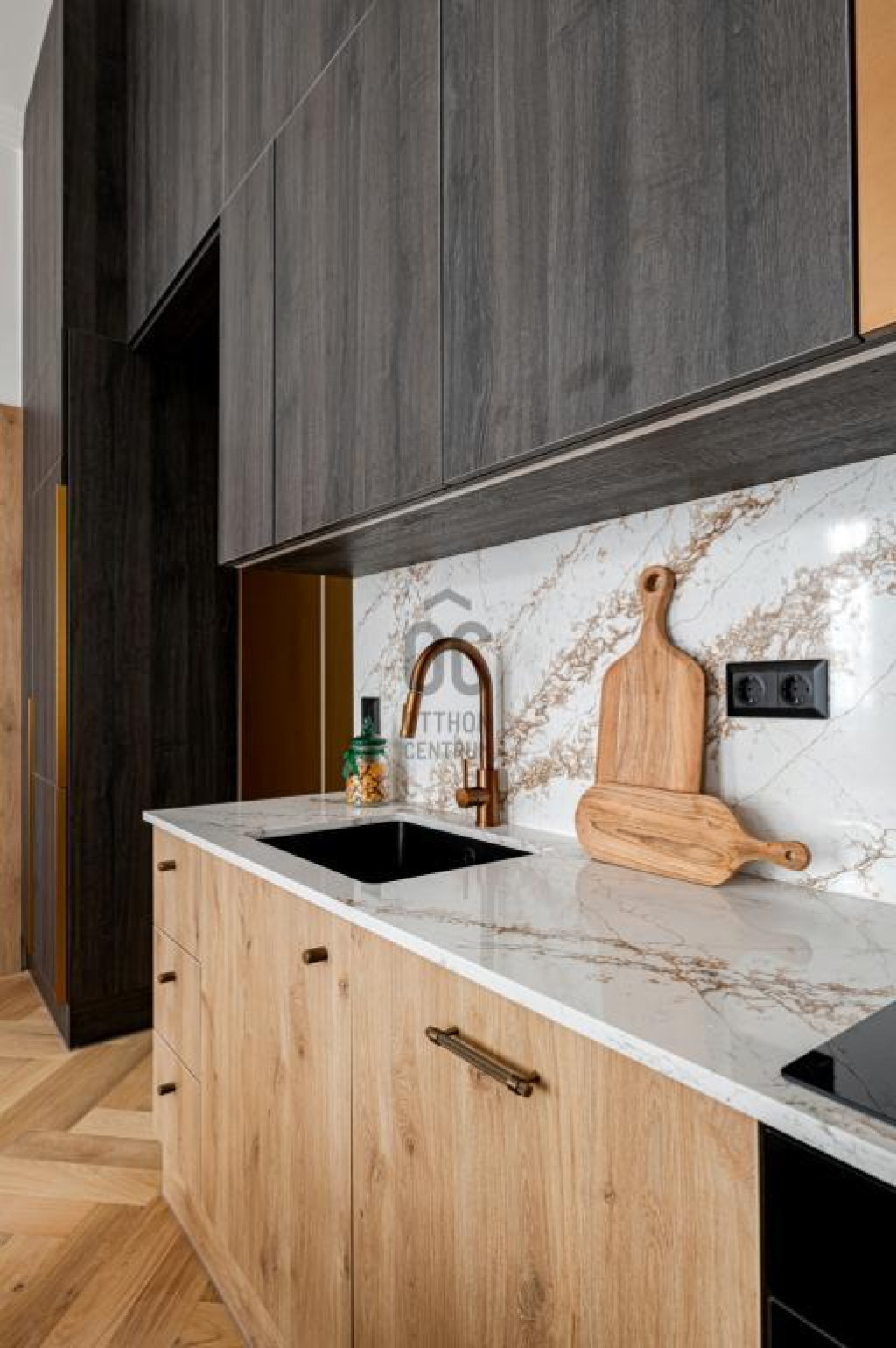 -Az ingatlan magas műszaki és esztétikai színvonalon került kialakításra, kizárólag prémium anyagok felhasználásával. A belső tér átgondolt, funkcionális, ugyanakkor elegáns és időtálló.