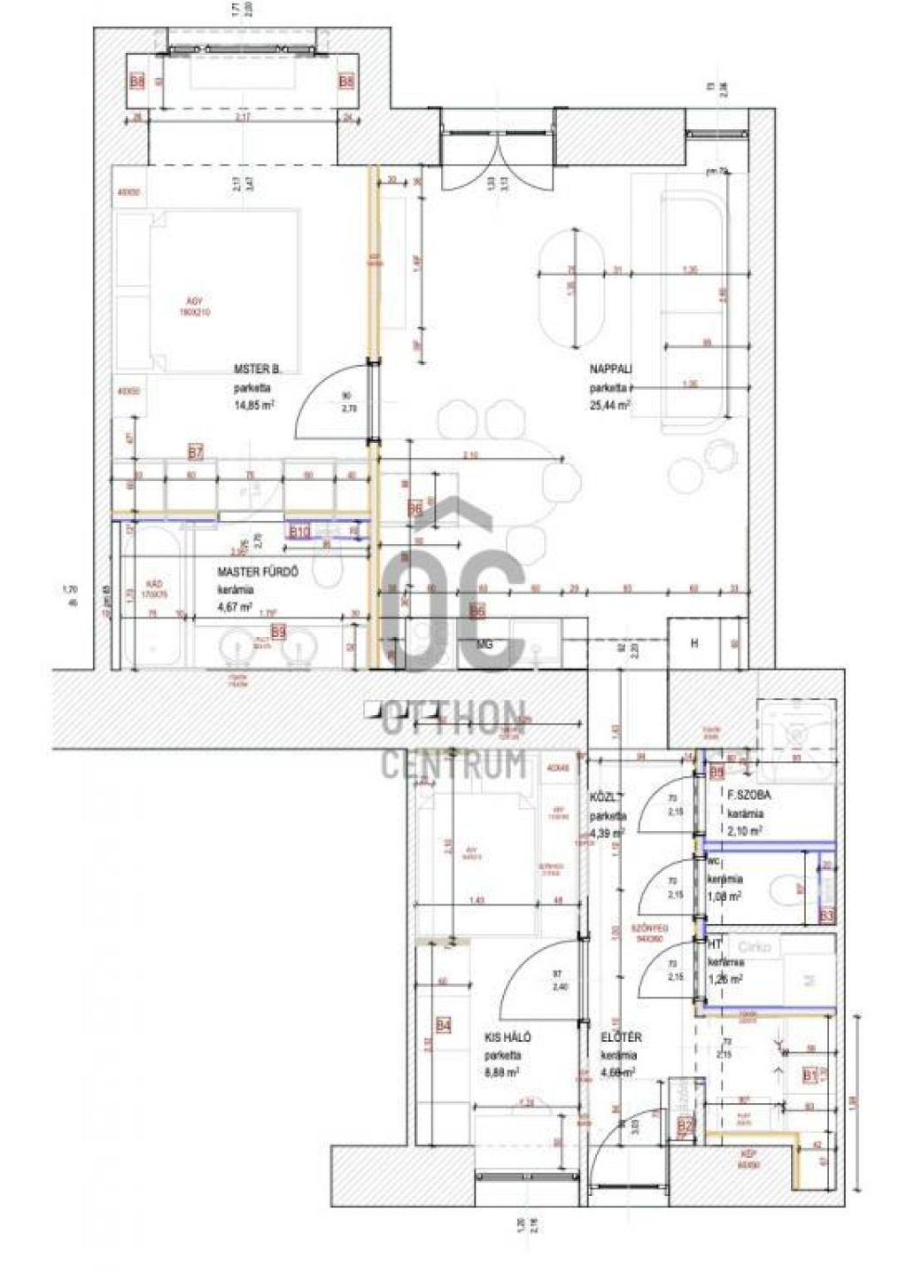 -Elosztás: amerikai konyhás nappali + 2 hálószoba + 2 fürdő, gardrób, háztartási helyiség