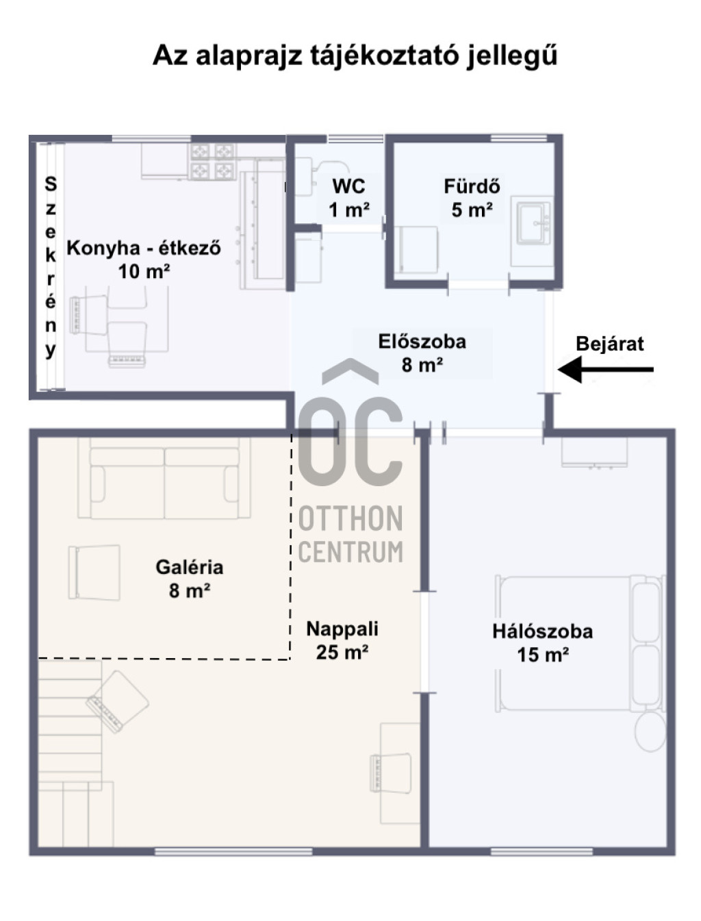 - 64 m² plusz 8 m² galéria , 2 külön- és egybe is nyíló szoba – átgondolt elrendezés, jól élhető terek