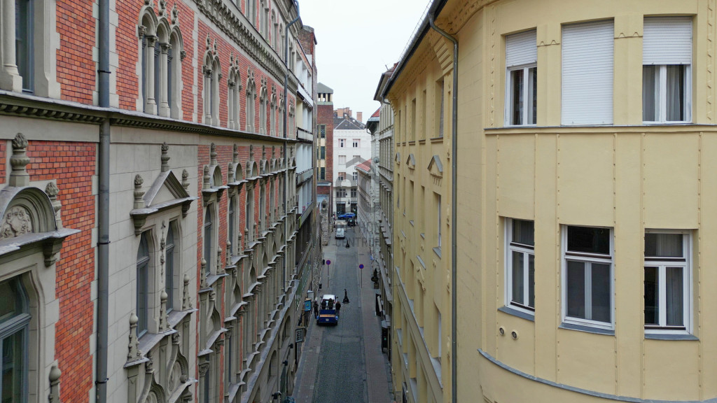 - Keleti tájolás, csendes mellék utcai nézet – reggeli fények, élő belvárosi hangulat