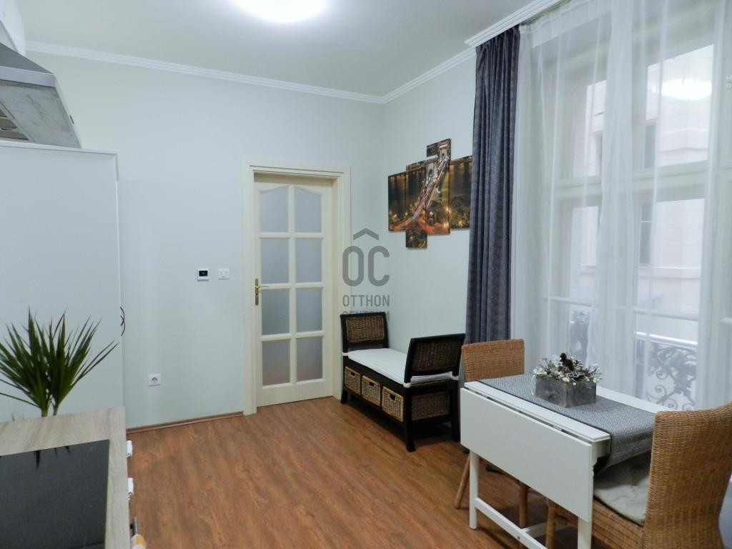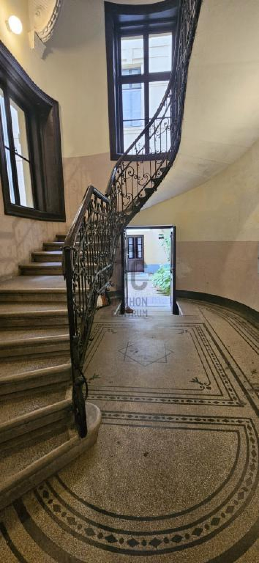V. kerületben, frekventált helyen, az Erzsébet híd és a Szabadság híd között, közvetlenül a Belgrád rakparttal párhuzamos utcában eladó egy fél emeleten elhelyezkedő, két lakássá osztott, felújított, nagypolgári lakás.