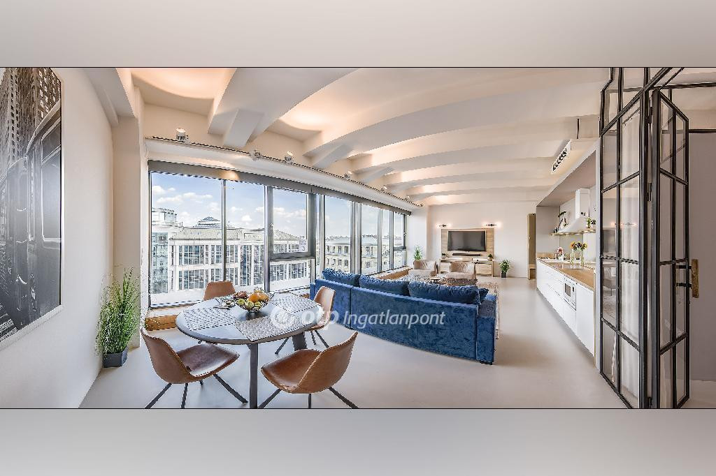 Tökéletes lokáció, tágas, világos terek és nagy belmagasságok, industrial stílus jellemzi a lakásokat. A hirdetésben szereplő lakás helyiségei: amerikai konyhás nappali, 1 hálószoba, 2 fürdőszoba, közlekedők. A nappali a Múzeum körútra néz, padlótól a mennyezetig érő közel 9 m széles ablakfelülettel.