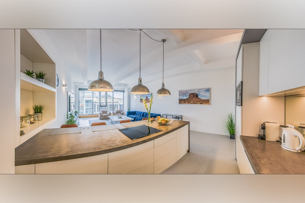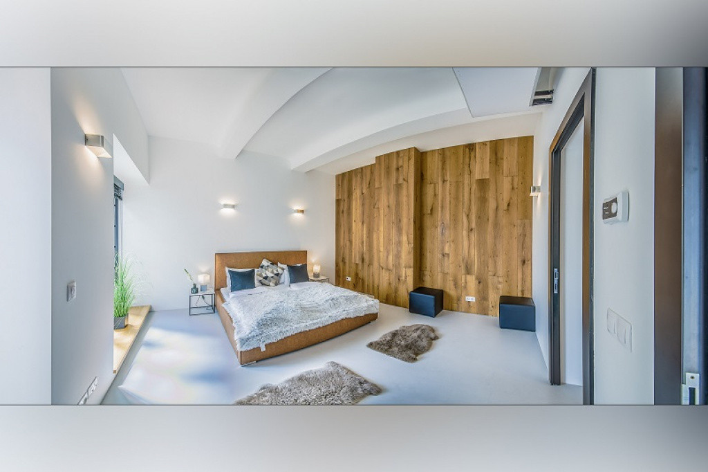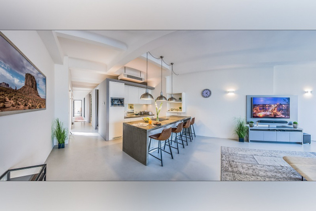 A házat 2018-ban álmodták meg a korábban itt fekvő ipari épület helyén és kihasználva az adottságokat industrial stílusban alkották újra.