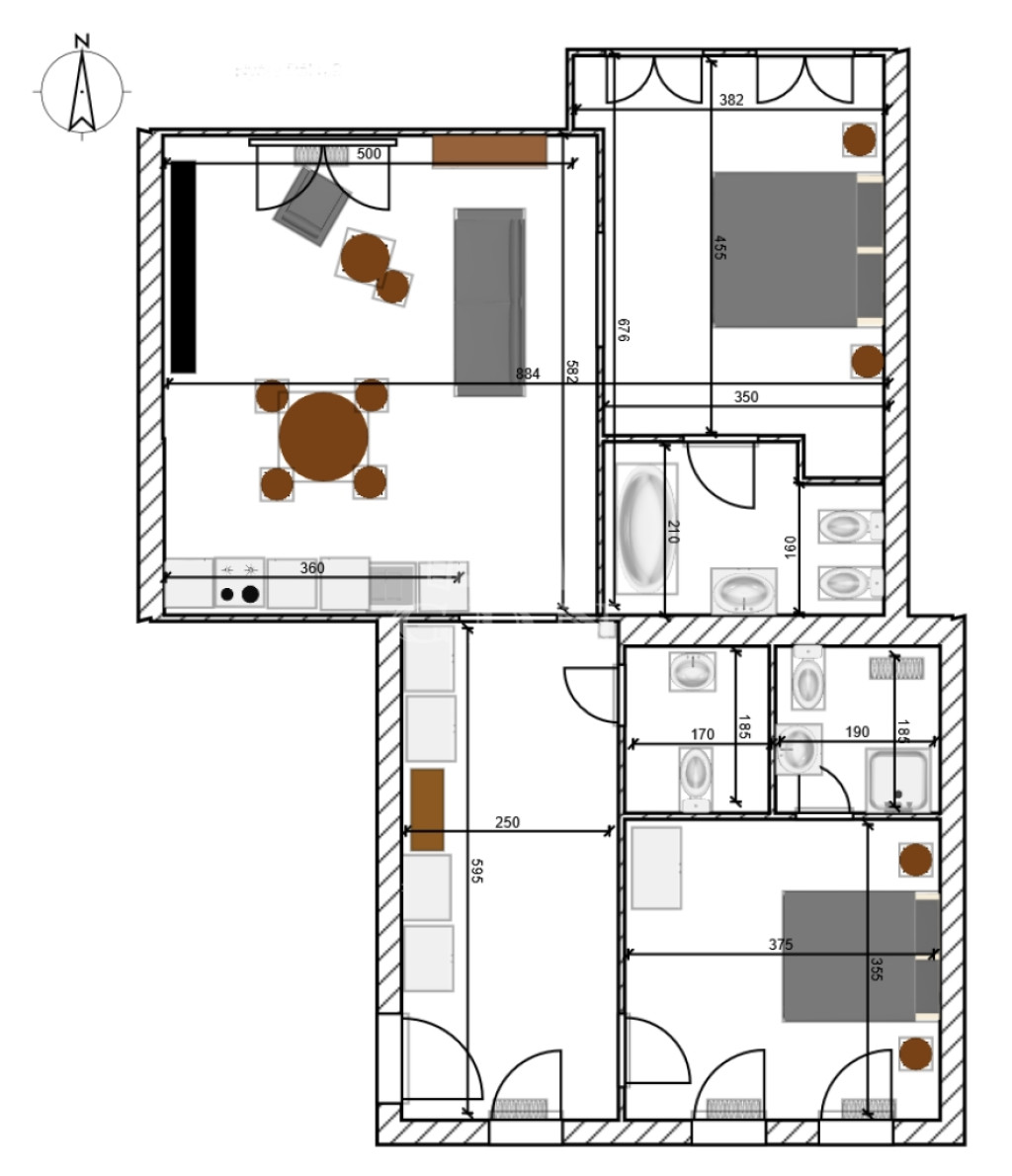 - 89 négyzetméter: amerikai konyhás nappali + 2 hálószoba