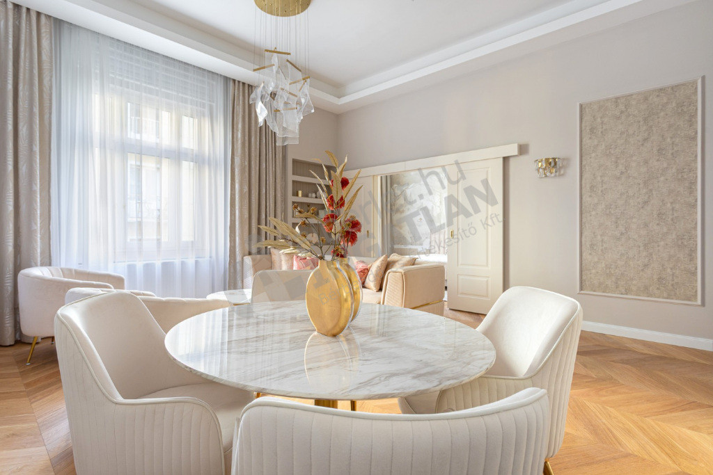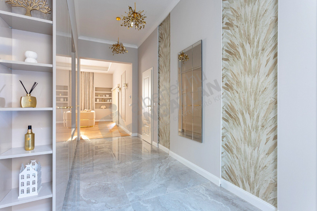 A lakás teljes körű, magas minőségű felújításon esett át, mely során új nyílászárók, teljesen megújított gépészet, prémium burkolatok és beépített bútorok kerültek kialakításra.
