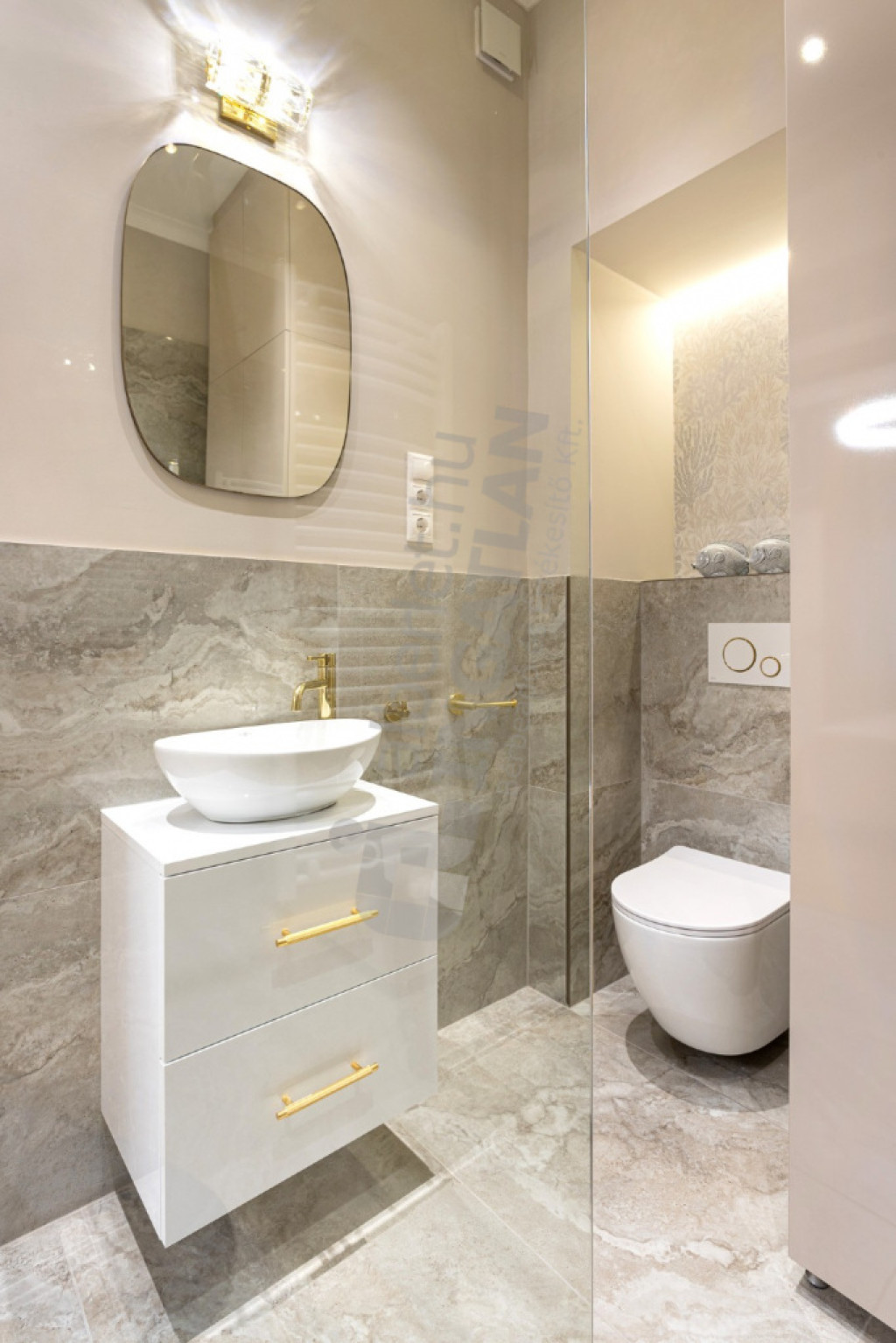 Az ingatlan nappali + két hálószobás elrendezésű, duplakomfortos, külön vendég WC-vel.