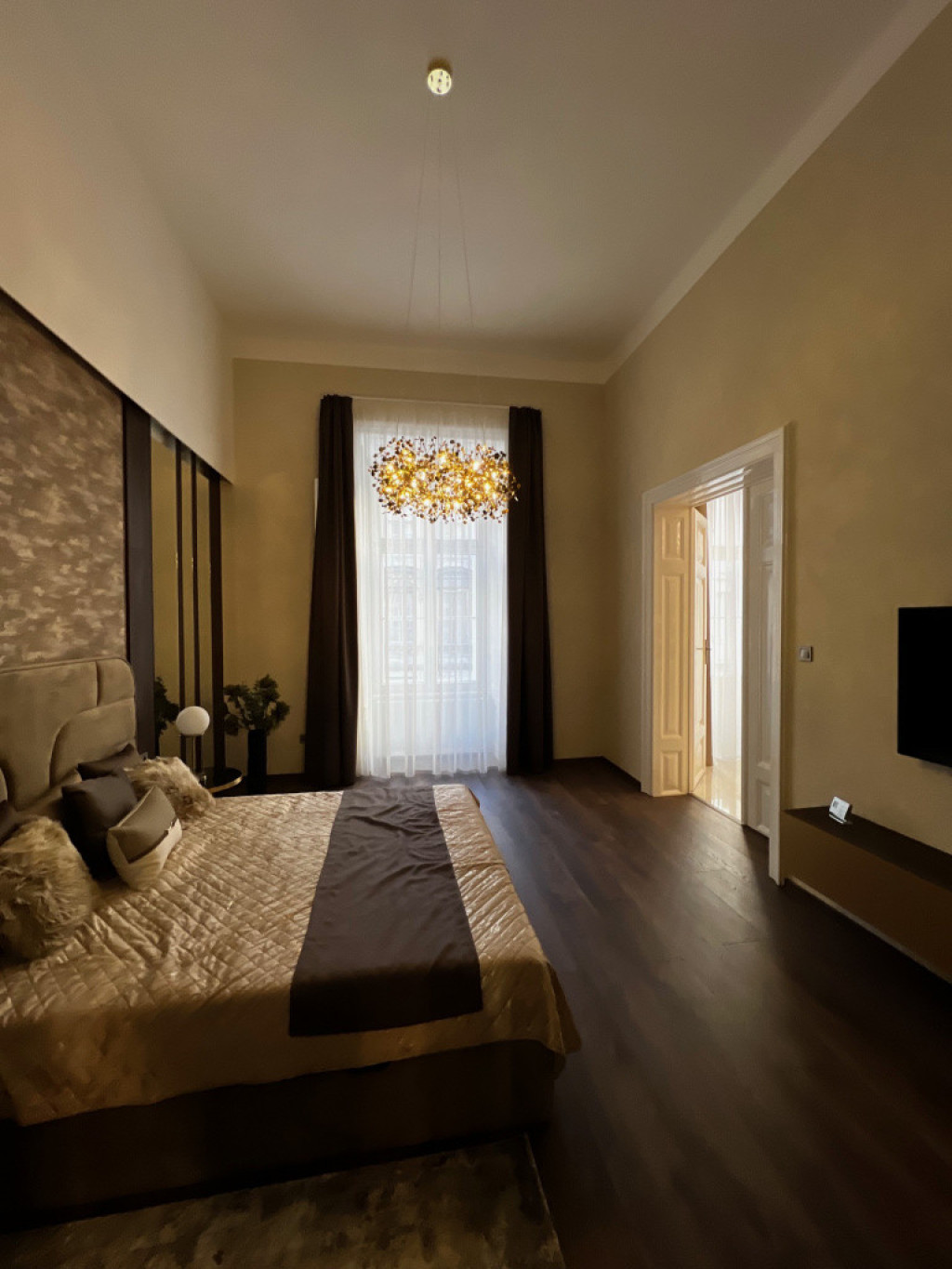 Szabadság Tér közvetlen közelében, az Arany János és az Október 6. Utca találkozásánál kínálunk eladásra egy utcai fekvésű, tejesen felújított, 153 nm + 30 nm galériás, nappali + 4 hálószobás, 5m belmagasságú, gépesített konyhás, teljesen berendezett lakást!