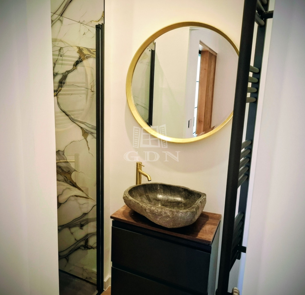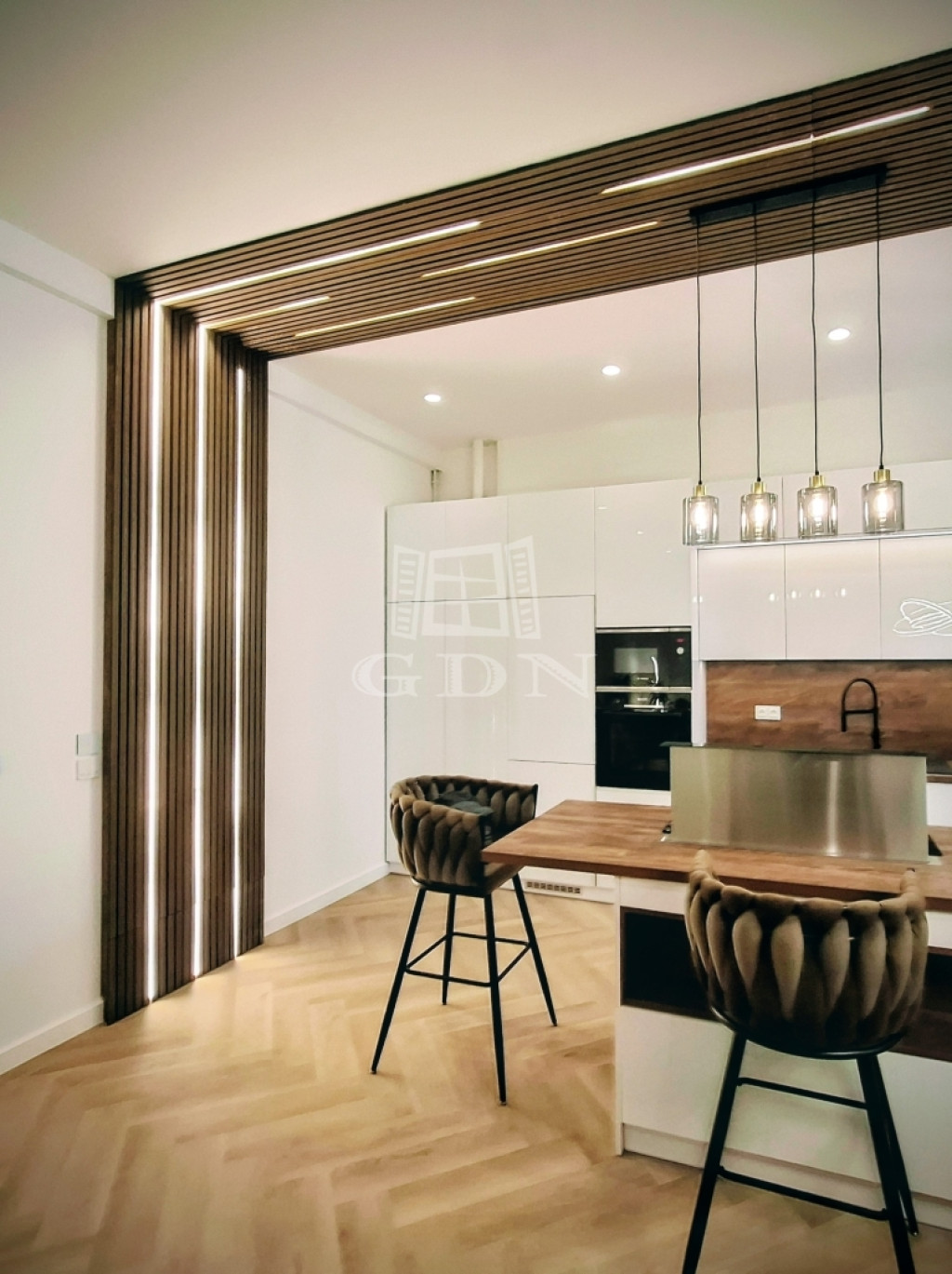A felújítás során magas színvonalú anyagok kerültek felhasználásra, amely modern és elegáns megjelenést biztosít.