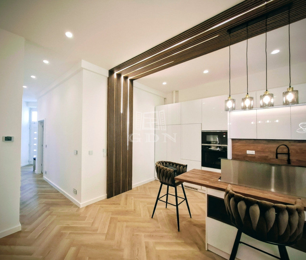 Fedezze fel ezt a frissen felújított, 91 négyzetméteres lakást a Budapest belvárosában található Papnövelde utcában.