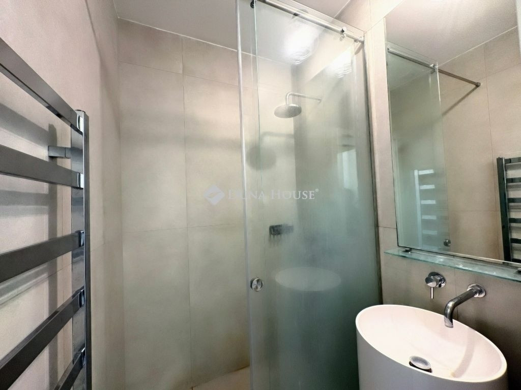 A lakás a harmadik emeleten található, lift könnyíti a megközelítést. 2022-ben egy neves belsőépítész tervei alapján teljes körűen megújult: a tágas nappaliból üvegfallal leválasztott hálórész, az egyedi konyha, a letisztult fürdőszoba és a modern kényelmi elemek (klíma, redőnyökkel felszerelt nyílászárók) elegáns egységet alkotnak.