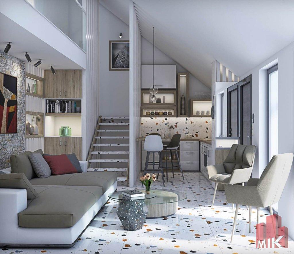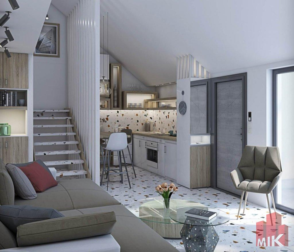 Belső kétszintes lakások, nagy tetőteraszok, okos-otthonok.