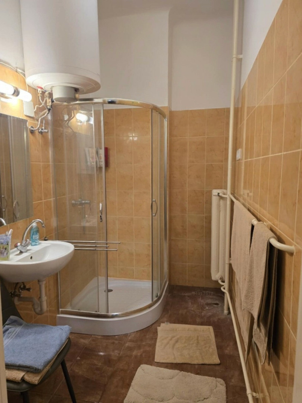 A lakás elosztása: előszoba, nappali, konyha, hálószoba, spájz, fürdőszoba és külön wc.