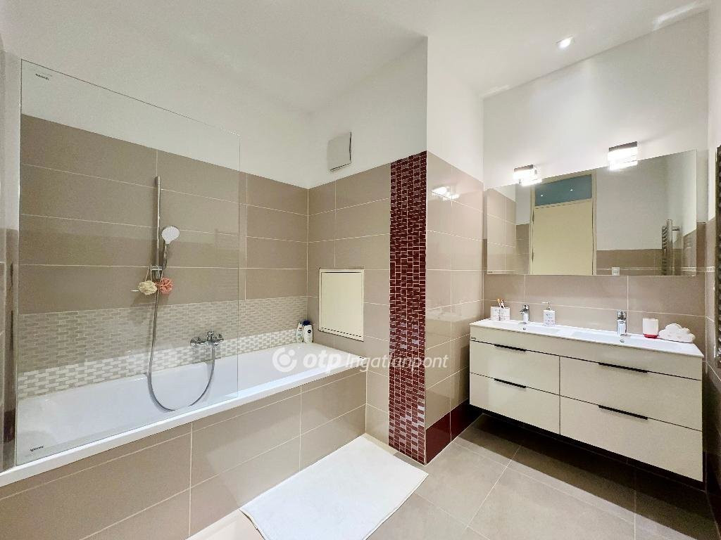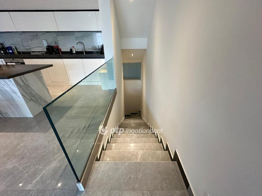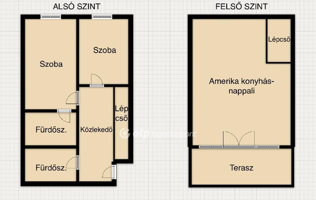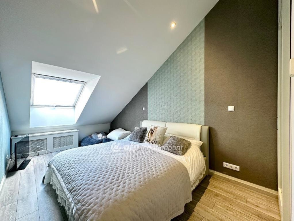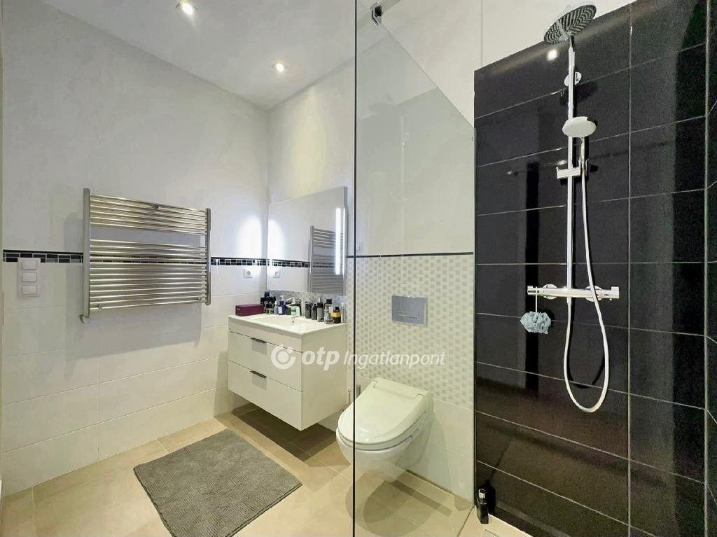 Az ingatlan elrendezése átgondolt és élhető: az alsó szinten egy tágas, amerikai konyhás nappali-étkező tér kapott helyet, amely ideális a mindennapi élethez és vendégek fogadásához is. A lakás két külön nyíló hálószobával és két igényesen kialakított, modern fürdőszobával rendelkezik, így akár családok, akár elegáns városi rezidenciát keresők számára is kiváló választás.