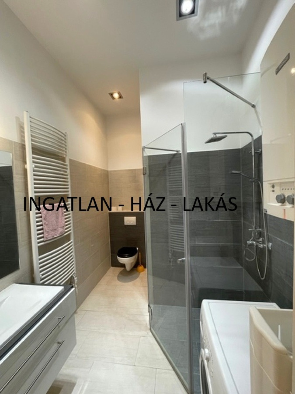 Elosztása: Nappali + 2 hálószoba gardróbhelyiséggel, modern beépített gépesített konyha, tágas zuhanyzós fürdőszoba, külön wc és előszoba helyiségekből áll. A lakás gépesített új bútorokkal bebútorozott (a bútorok megegyezés szerint megvásárolhatók).