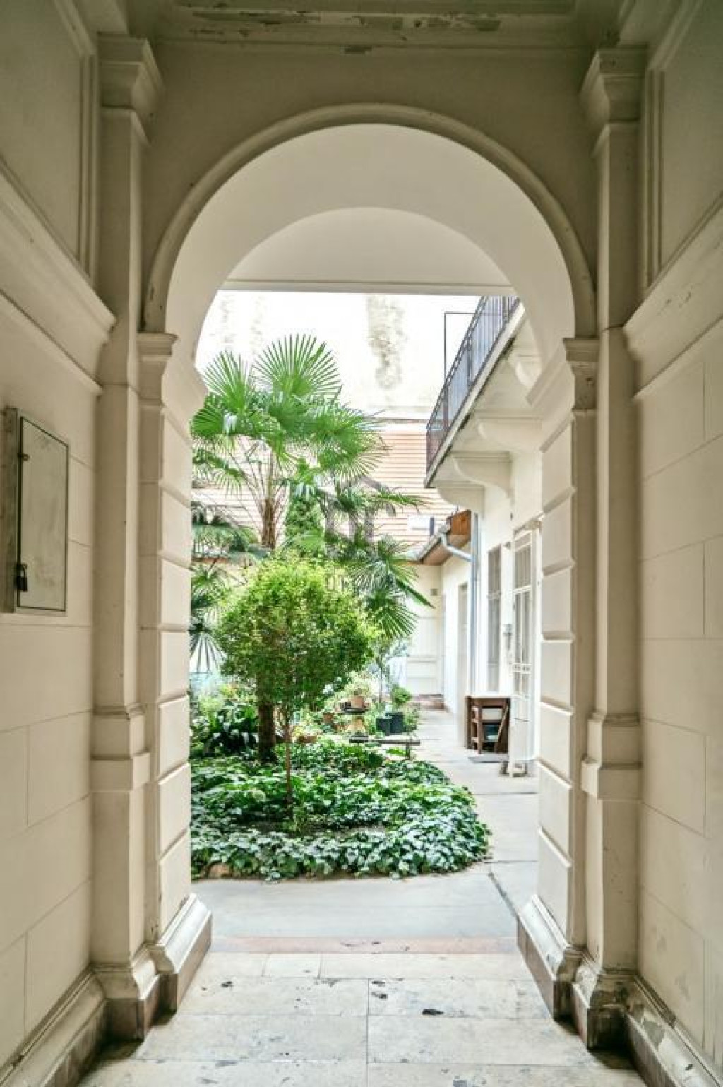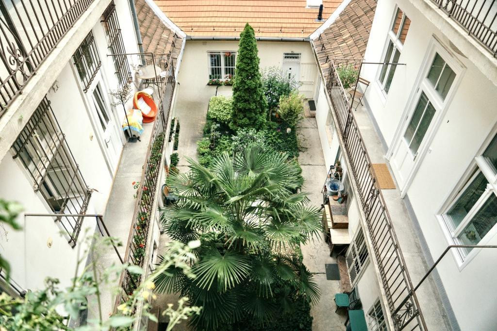 ️ A belső udvarban hangulatos, pálmafás kert nyújt nyugalmat a belváros pezsgésében.