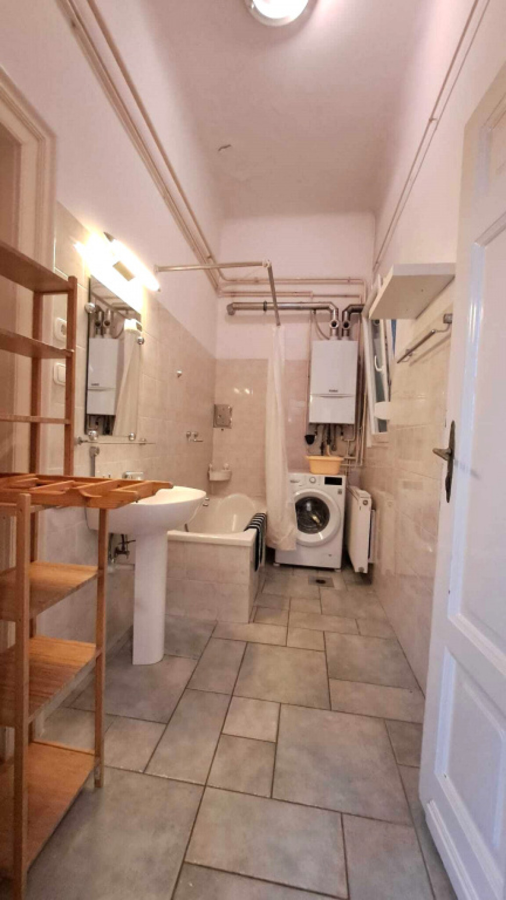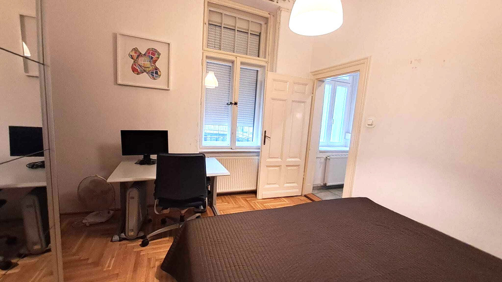 A szobák udvarra nyíló ablakosak, külön és egybe nyílnak, parkettával burkoltak. A konyha konyhabútorral, gáz tűzhellyel és főzőlappal, mosogatógéppel, szag-pára elszívóval felszerelt. A fürdőszoba ablakos, mosdóval, káddal felszerelt. A meleg vízről és az otthon melegéről gáz cirkó gondoskodik, vízórával felszerelt lakás. A mai elrendezés két lakás egybe nyitásával lett kialakítva, ami könnyen újból két kis lakássá alakítható, két külön helyrajzi számon szerepelnek, ezért sok lehetőséget rejt magában.