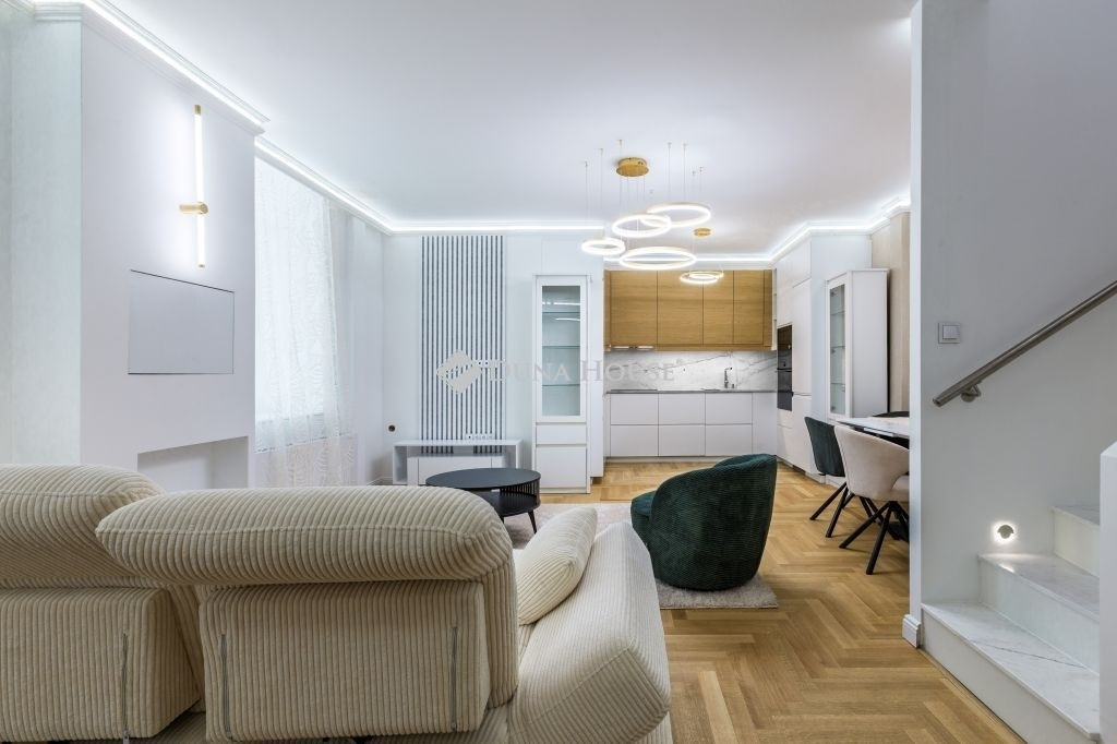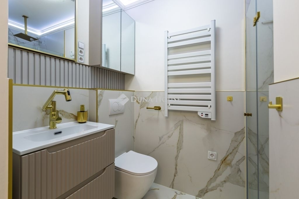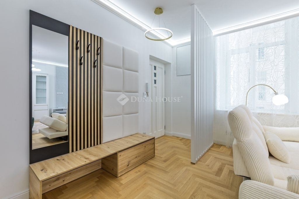 Egy 75 m²-es, belső kétszintes design otthon a Városház utcában!*******A LAKÁS ELKÉSZÜLT ÉS KÖLTÖZHETŐ!*******Teljesen újjáépített és berendezett lakás Budapest V. kerületének egyik legszebb, műemlékvédelem alatt álló épületében, a patinás Városház utcában pár lépésre a Szervita tértől, csendes, mégis kiválóan megközelíthető lokációban.Kialakítás és hangulatA lakást belsőépítész által megálmodott koncepció alapján újították fel. A kétszintes kialakításnak köszönhetően tágas, jól átgondolt életterek várják az új tulajdonost, a természetes fény és a prémium anyaghasználat elegáns, nyugodt atmoszférát teremt. Nappali, konyha-étkező, 2 hálószoba, 2 fürdőszoba, háztartási helyiség Teljes értékű belmagasság: alsó szint 275 cm, emelet 265 cm A lakás a tágas belső udvarra néz, amely biztosítja a természetes fényt és a csendetMűszaki tartalom és extrák Gépészet: Hőszivattyús fűtés-hűtés (Wi-Fi-vel vezérelhető), Inova fan-coil hőleadók, helyiségenként szabályozható Burkolatok: Svájci rétegelt fa parketta, olasz márványhatású gres lapok (Marca Corona Scultorea) Konyha: Egyedi gyártású U alakú, kvarcit kő munkapulttal, AEG beépített gépekkel, Hansgrohe csapteleppel Világítás: Stukkóba rejtett LED világítás, fényerőszabályzóval, dizájn világítótestek Fürdők: Teljesen felszerelt, vízhőmérséklet-kijelzős csaptelepek, LED tükrök, esőztető zuhany Nyílászárók: Új, hőszigetelt ablakok műemléki engedéllyel, 88 mm vastag fa kivitel az emeleten Biztonság: Tűz- és füstérzékelő, betörésjelző rendszerA lakás teljes berendezéssel kerül átadásra: Design ülőgarnitúra, étkezőasztal bársony székekkel, TV-szekrény, gardrób, hálószobai bútorzat, dekorációk Minden ablakon fényáteresztő függöny Teljes értékű, berendezett háztartási helyiség. Ideális választás: Belvárosi luxus otthont keresőknek Üzletembereknek, diplomatáknak.
