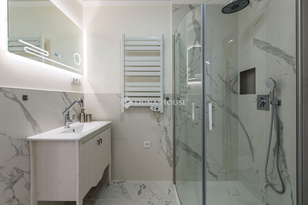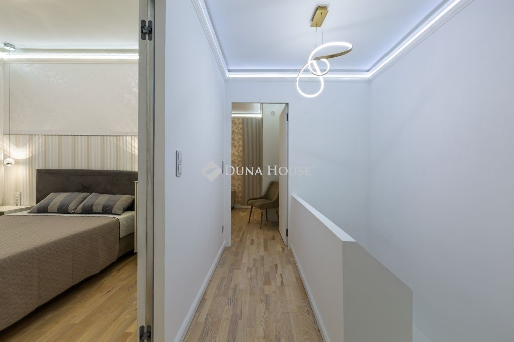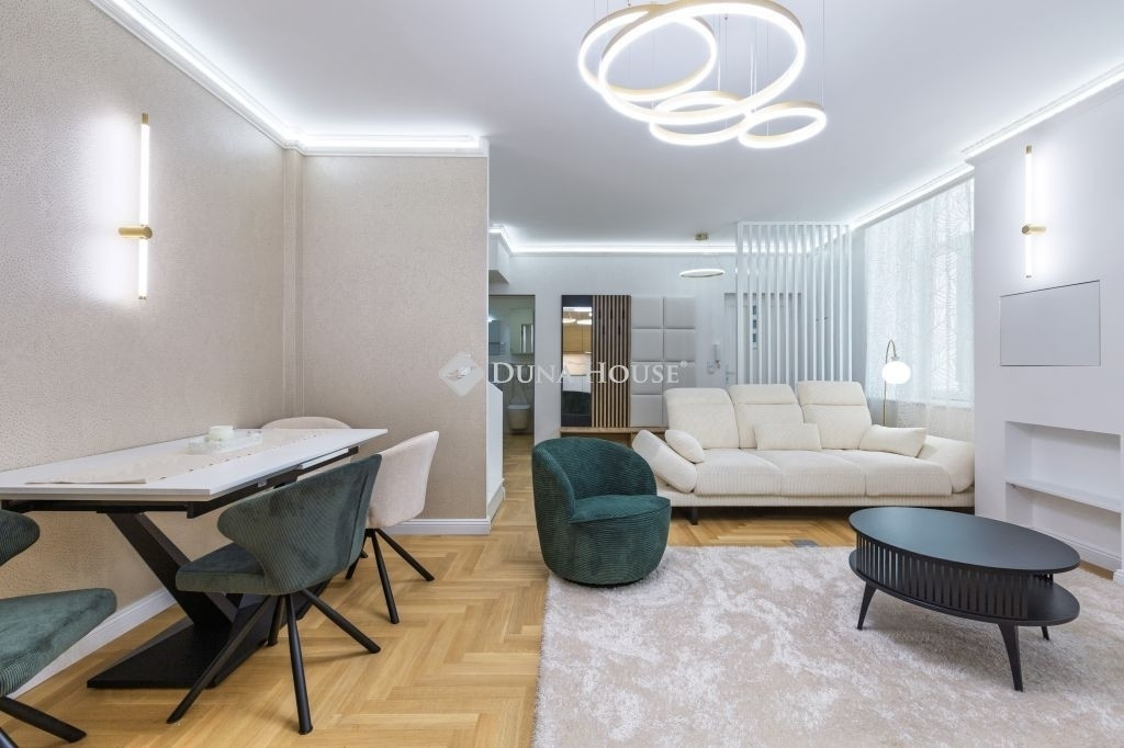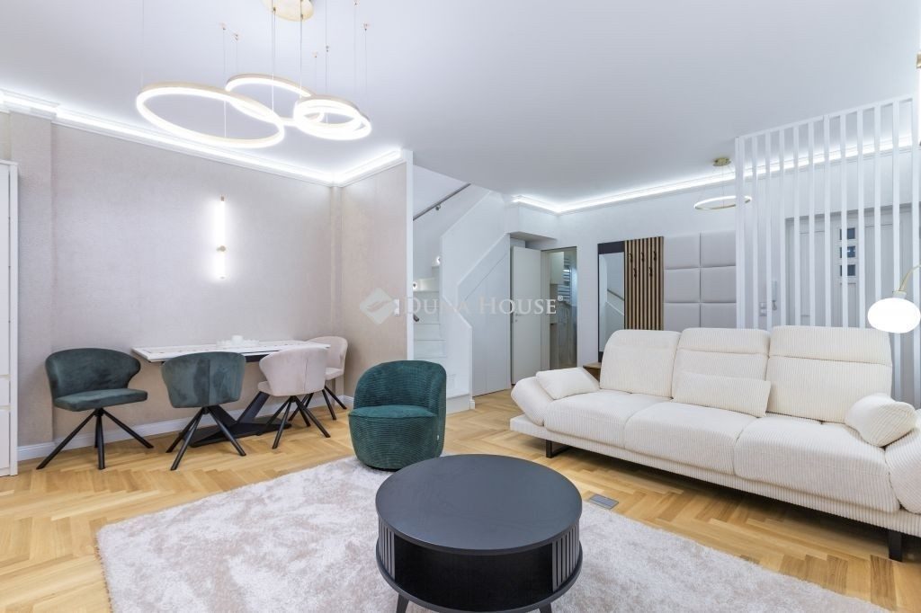 Egy 75 m²-es, belső kétszintes design otthon a Városház utcában!*******A LAKÁS ELKÉSZÜLT ÉS KÖLTÖZHETŐ!*******Teljesen újjáépített és berendezett lakás Budapest V. kerületének egyik legszebb, műemlékvédelem alatt álló épületében, a patinás Városház utcában pár lépésre a Szervita tértől, csendes, mégis kiválóan megközelíthető lokációban.Kialakítás és hangulatA lakást belsőépítész által megálmodott koncepció alapján újították fel. A kétszintes kialakításnak köszönhetően tágas, jól átgondolt életterek várják az új tulajdonost, a természetes fény és a prémium anyaghasználat elegáns, nyugodt atmoszférát teremt. Nappali, konyha-étkező, 2 hálószoba, 2 fürdőszoba, háztartási helyiség Teljes értékű belmagasság: alsó szint 275 cm, emelet 265 cm A lakás a tágas belső udvarra néz, amely biztosítja a természetes fényt és a csendetMűszaki tartalom és extrák Gépészet: Hőszivattyús fűtés-hűtés (Wi-Fi-vel vezérelhető), Inova fan-coil hőleadók, helyiségenként szabályozható Burkolatok: Svájci rétegelt fa parketta, olasz márványhatású gres lapok (Marca Corona Scultorea) Konyha: Egyedi gyártású U alakú, kvarcit kő munkapulttal, AEG beépített gépekkel, Hansgrohe csapteleppel Világítás: Stukkóba rejtett LED világítás, fényerőszabályzóval, dizájn világítótestek Fürdők: Teljesen felszerelt, vízhőmérséklet-kijelzős csaptelepek, LED tükrök, esőztető zuhany Nyílászárók: Új, hőszigetelt ablakok műemléki engedéllyel, 88 mm vastag fa kivitel az emeleten Biztonság: Tűz- és füstérzékelő, betörésjelző rendszerA lakás teljes berendezéssel kerül átadásra: Design ülőgarnitúra, étkezőasztal bársony székekkel, TV-szekrény, gardrób, hálószobai bútorzat, dekorációk Minden ablakon fényáteresztő függöny Teljes értékű, berendezett háztartási helyiség. Ideális választás: Belvárosi luxus otthont keresőknek Üzletembereknek, diplomatáknak.