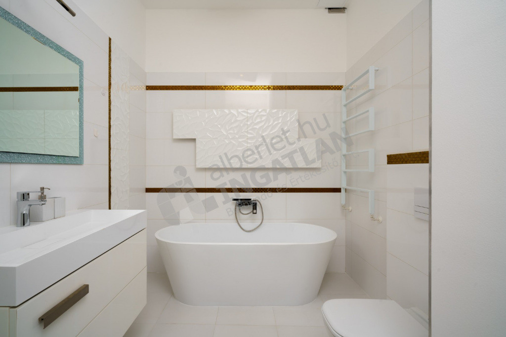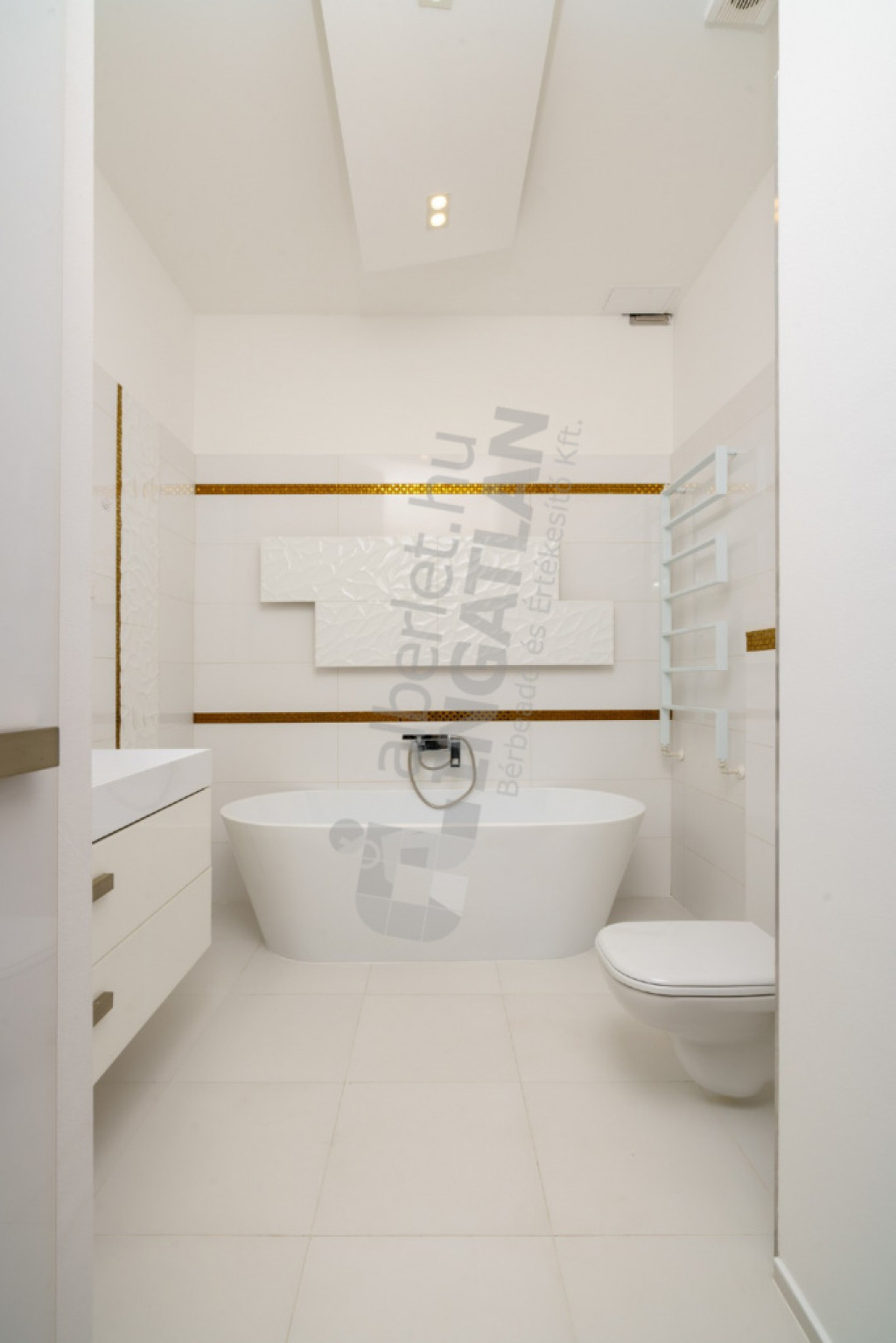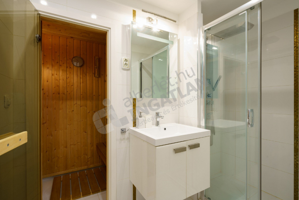 A lakásban kettő hálószoba került kialakításra kettő fürdőszobával (egy zuhanyzós, egy kádas), valamint egy finn szauna is beépítésre került.