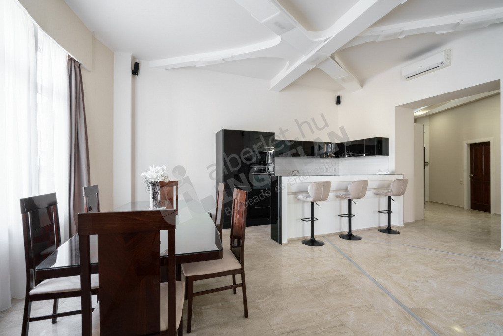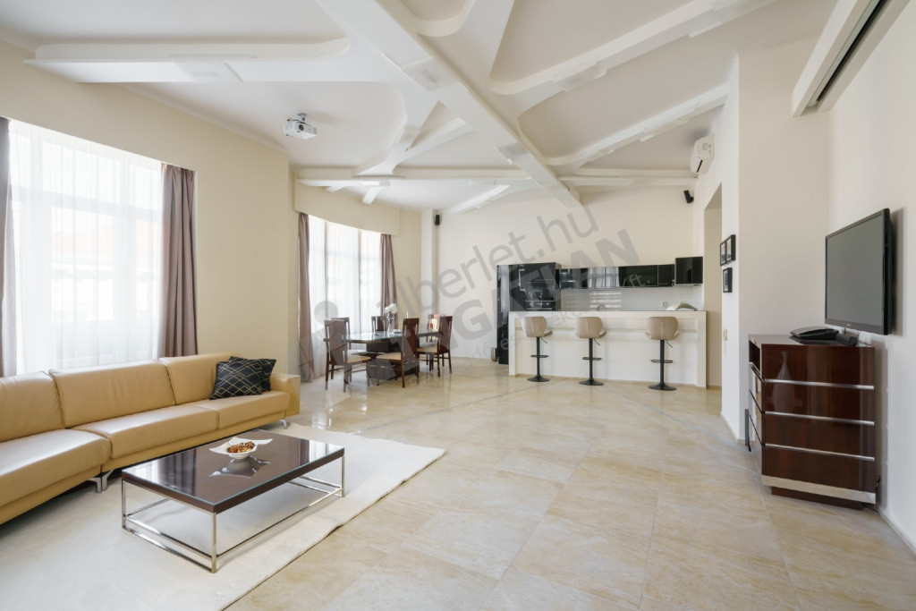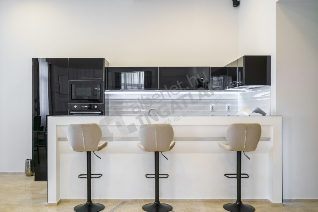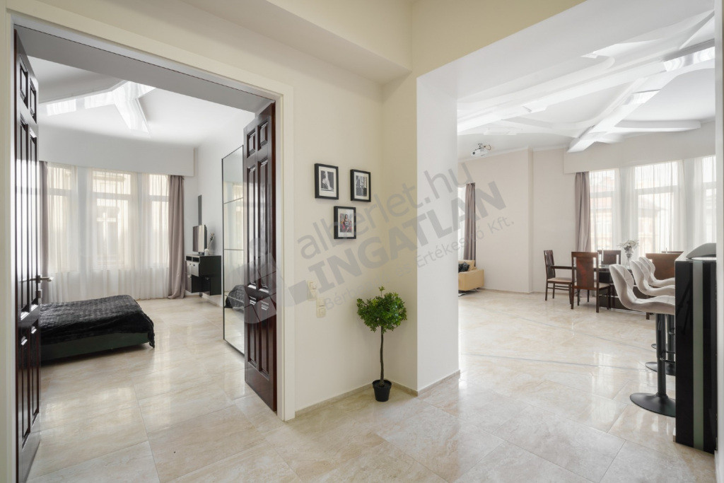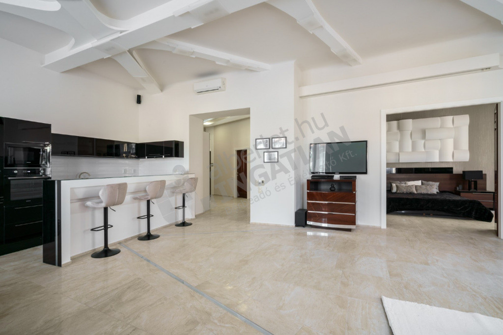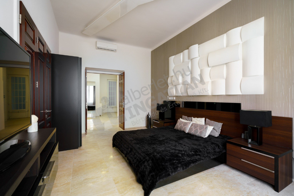 A lakás olasz, kiváló minőségű burkolatokkal felszerelt, ezen kívül a nappaliban valamint a hálószószobában Alf Italia bútorok találhatóak.