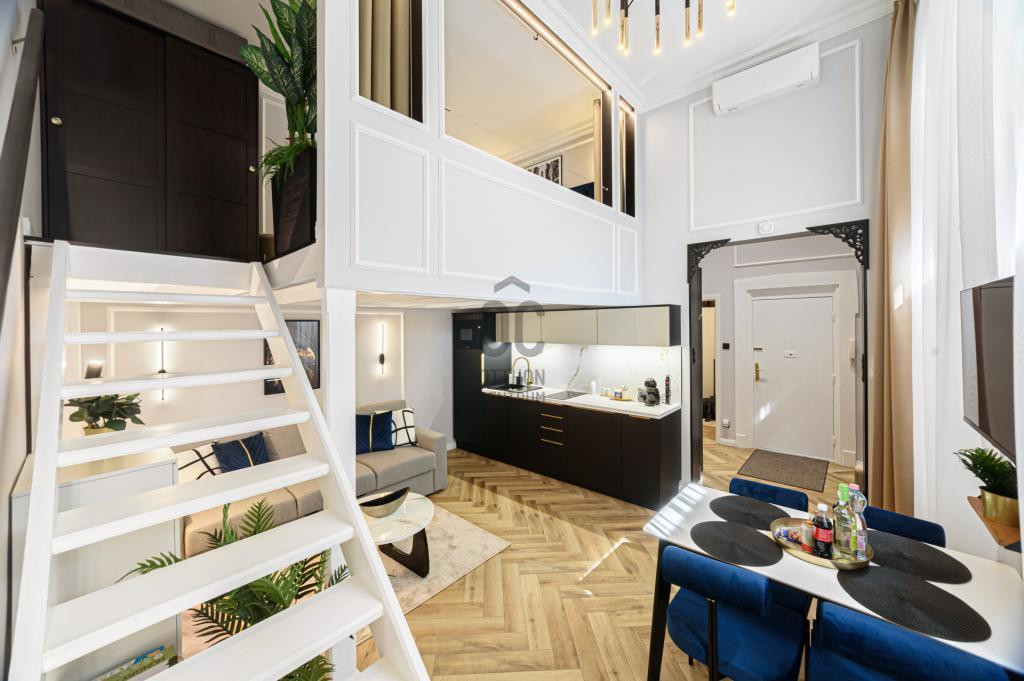 Eladó egy igényesen felújított és teljesen berendezett, 36 m² alapterületű plusz 10 m² állógalériás lakás Budapest egyik legkeresettebb, mégis csendes részén, a Liszt Ferenc tér közelében. A hasznos alapterület összesen 46 m²