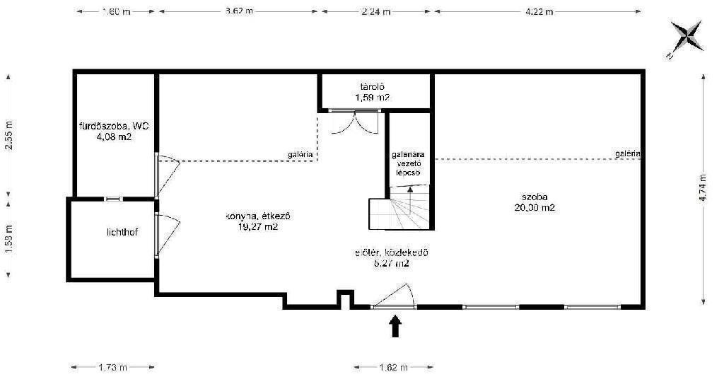 A tulajdoni lapon 51 nm alapterület szerepel, azonban a kialakított 18 nm-es galériával és a kizárólagos használatú, 4 nm-es lichthof területtel együtt összesen 73 nm hasznos élettérrel rendelkezik.