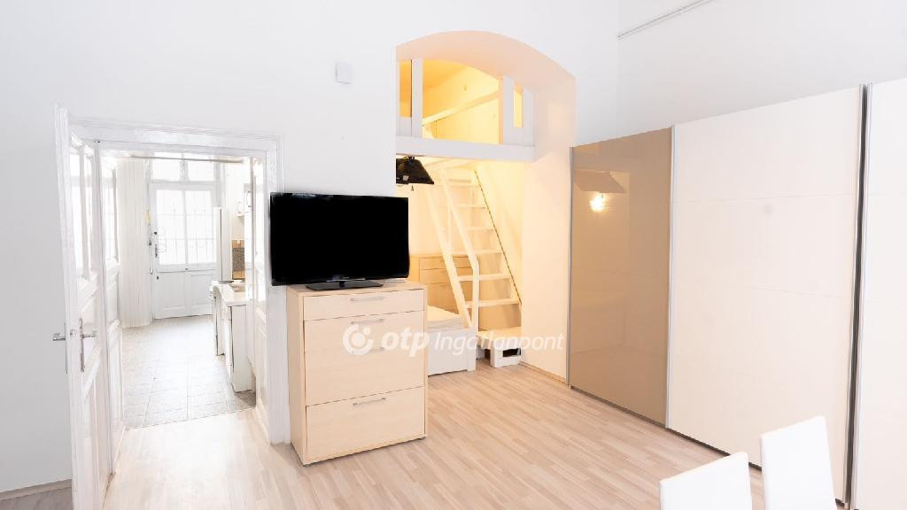 1 nagy szobás, utcára néző ablakokkal, amiből nyílik egy jelenleg hálóként használt galériás hall.