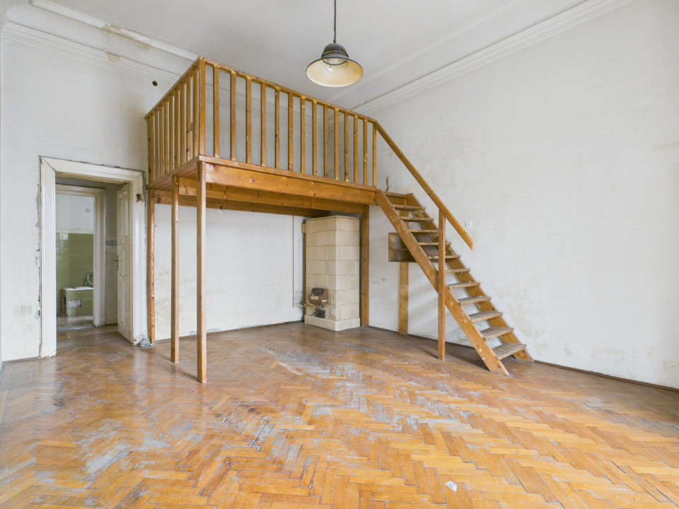 A lakás tágas mérete és a kiemelkedően magas belmagasság kiváló lehetőséget ad egy modern, jól átgondolt alaprajz kialakítására.