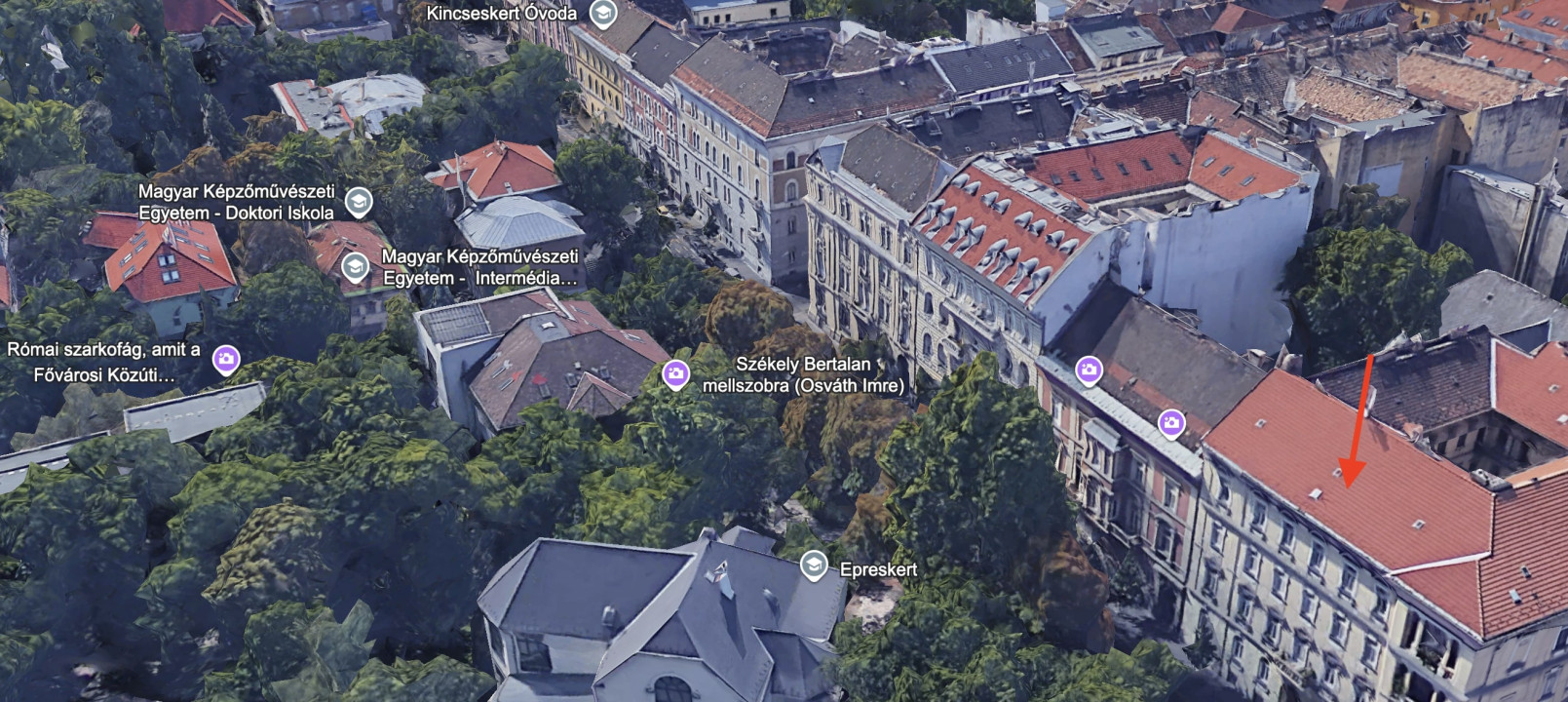A társasház egy gyönyörűen megőrzött, századfordulós épület a Diplomatanegyed egyik csendes, zöld utcájában.