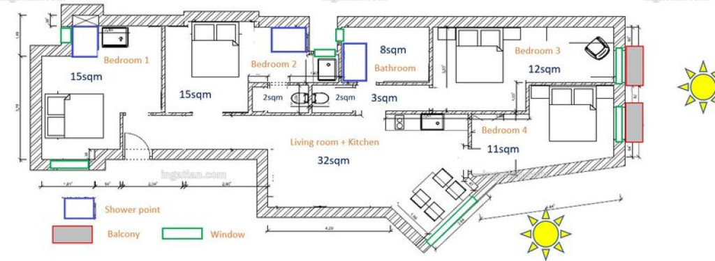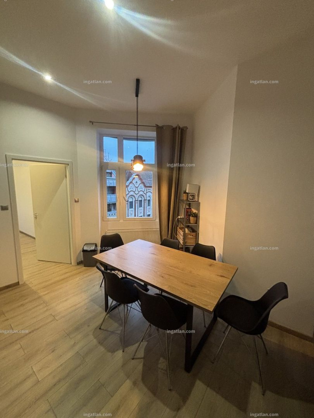 Eladó VI. kerület Csengery utcában egy 4. emeleti frissen felújitott, modern design lakás. Hivatalosan 99 m2, de valójában 10 m2-rel nagyobb. A jelenlegi formáját 6 éve nyerte el, amikor a válaszfalak átépitésével egy 4 hálószoba plusz amerikai konyhás ( beépitett túzhely, sutő és mosgatógép)nappalivá lett átépítve, melyben 3 fördőszoba és 2 WC is helyet kapott. A lakás jelenleg bútorozott, de igény esetén üresen is megvehető. A lakáshoz tartozik 2 francia erkély is. A konyha teljesen felszerelt gépekkel beleértve mosgatógépet is. A hálószobákből 2 saját fürdöszobával rendelkezik, melyek mozgatható falakkal vannak a vizes helységektől elválasztva. A fútést és melegvizellátást kondenzációs kazán biztosítja. A padlót laminált parketta borítja. A lakás pár év használat után most esett át egy felújjitáson.