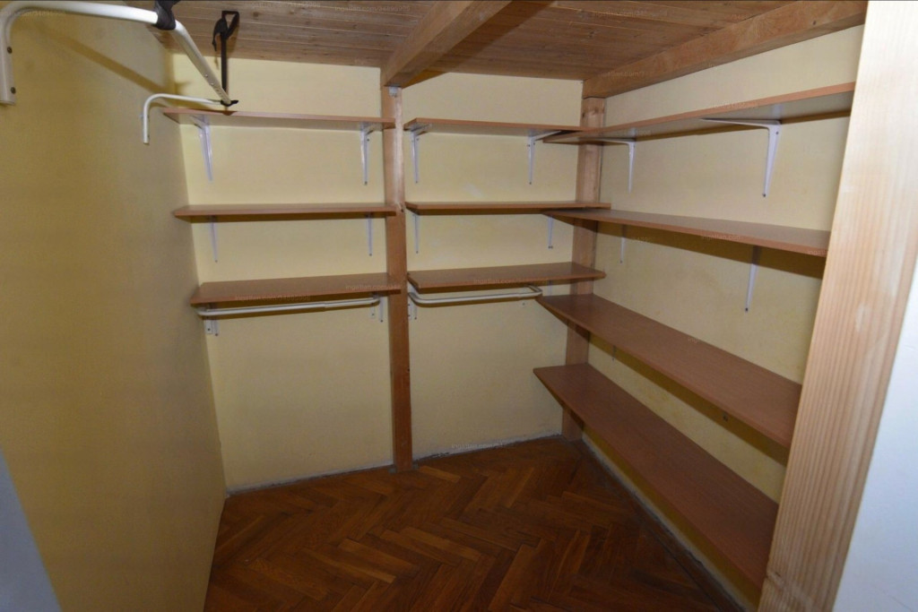A lakás elosztása: előszoba, konyha étkezővel, spájz, fürdőszoba, külön wc, nagy szoba, kisebb szoba, gardróbszoba (galériázott, ami akár hálófülkeként is használható 2 személy részére).