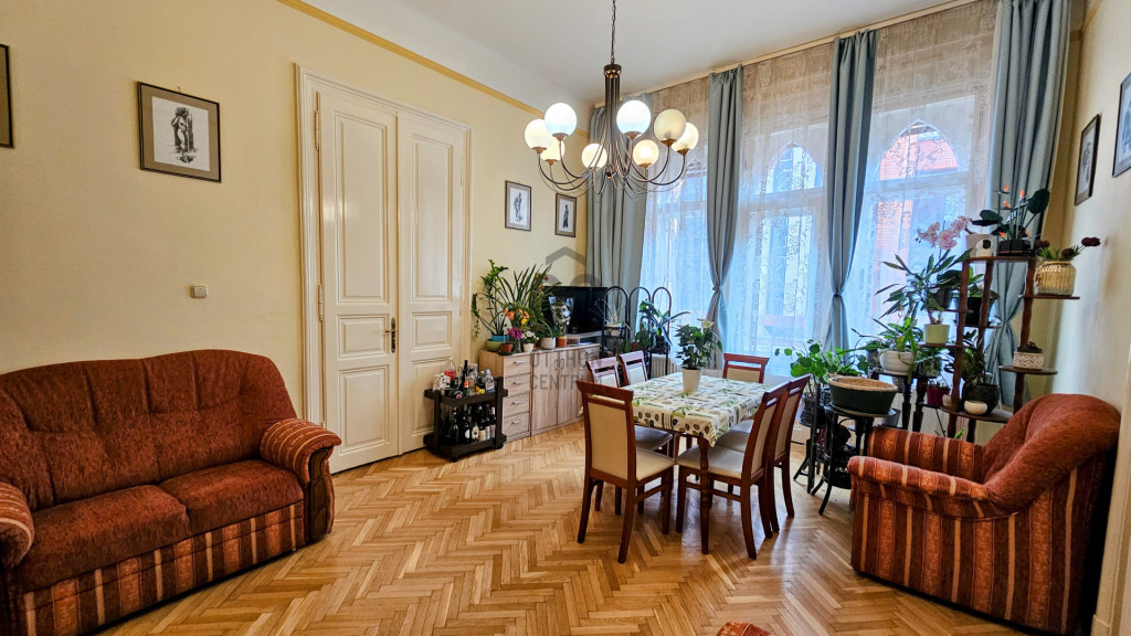 A POLGÁRI hangulatú, tulajdonilap alapján 94 m2 alapterületű lakás 3 szobát és egy gardróbot (régen úgynevezett cselédszobát) foglal magában.