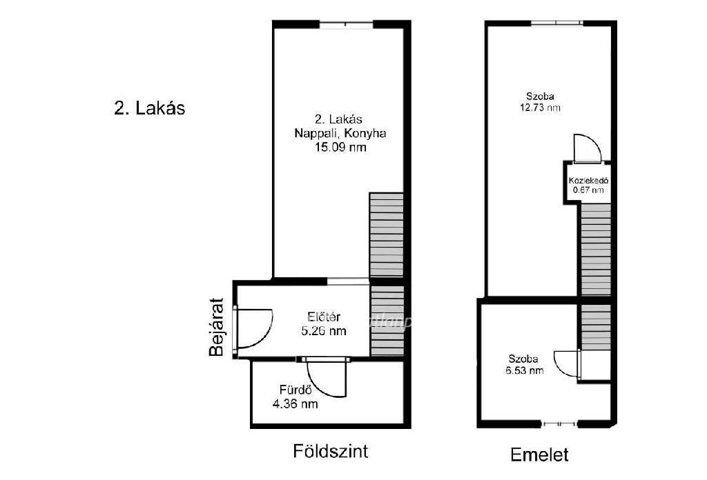 2-es lakás: 44,59 nm/ nappali +2 háló, 6 fő férőhely , 62.5 millió ft ELADVA!