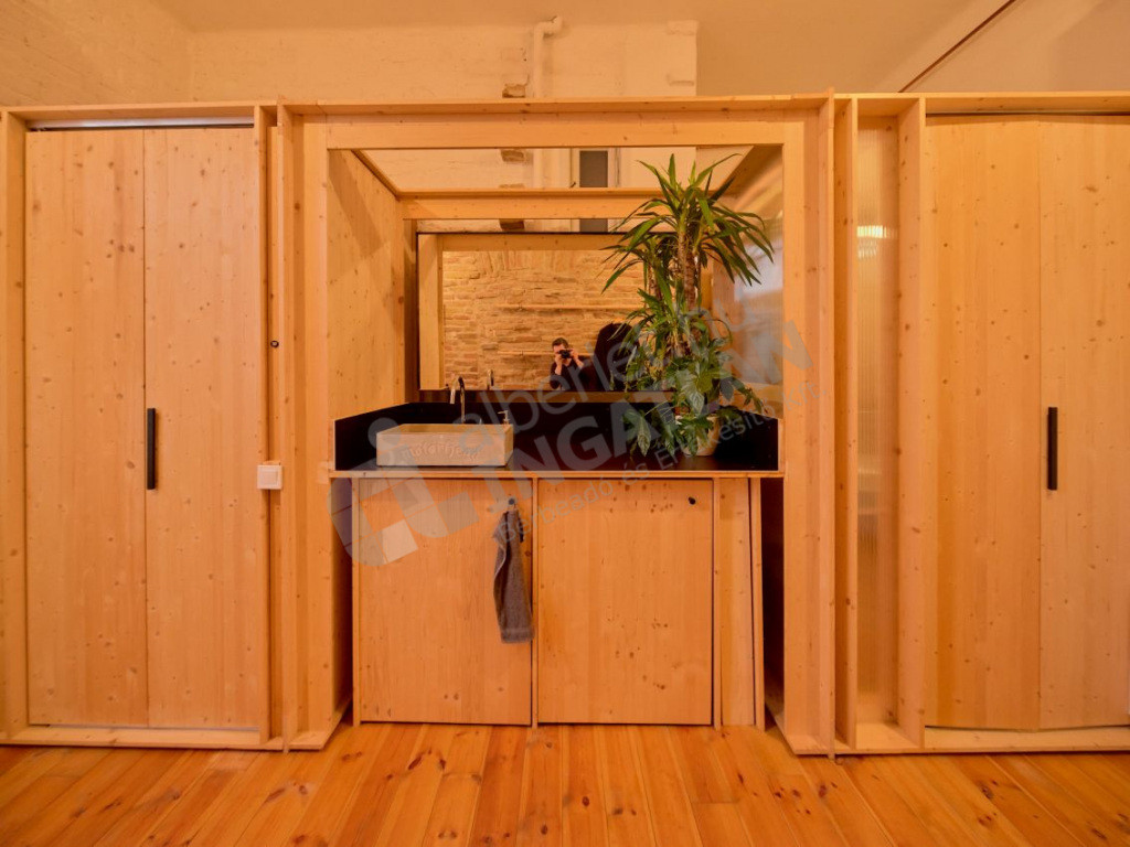 A lakás a LOFT lakáskultúra elveit és kialakítását követi, és a természetes anyaghasználatában a skandináv design köszön vissza.