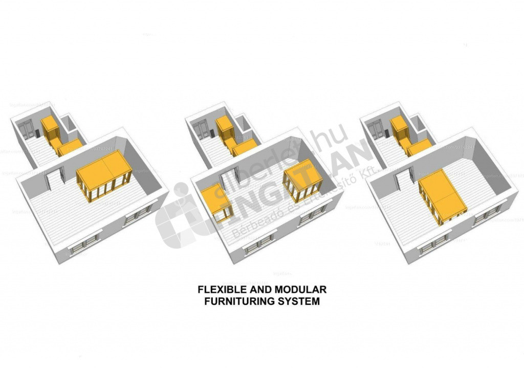 E mellett viszont a gépészeti, elektromos és egyéb rendszerei úgy van kialakítva, hogy igény esetén mégis a klasszikus kétszobás állapotra alakítható legyen.