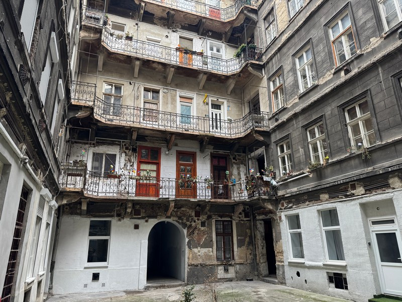A lakás belső udvarra néz, így a belvárosi elhelyezkedés ellenére csendes, nyugodt. A magas belmagasság és a jó alaprajzi adottságok lehetővé teszik a praktikus, modern átalakítást.