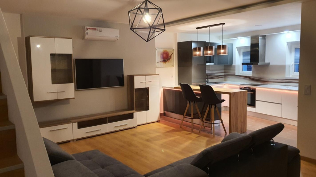 Valamennyi helyiségben klíma került beépítésre a mindenkori kényelmet biztosítva az év 12 hónapjában. Az amerikai konyhás nappali tágas-világos, kényelmes.