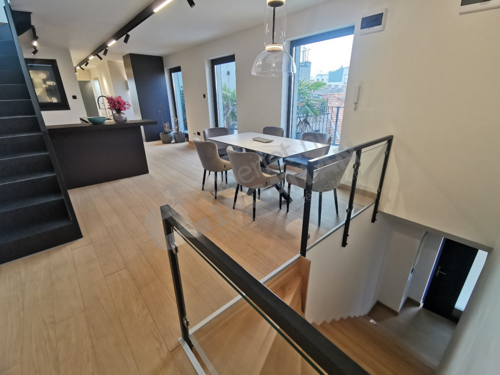 Lépjen be a luxus világába, ahol a modern elegancia találkozik a maximális kényelemmel! Egyedi tervezésű penthouse lakás exkluzív felszereltséggel és lenyűgöző városi panorámával várja Önt.