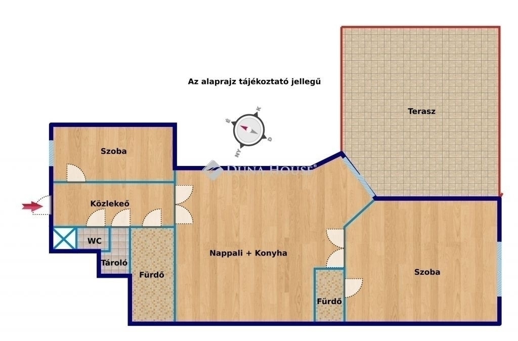 A lakás elrendezése ideális: egy tágas, amerikai konyhás nappali biztosít központi életteret, amely kiválóan alkalmas családi és baráti együttlétekre. Emellett két külön nyíló hálószoba áll rendelkezésre, amelyek közül az egyik saját fürdőszobával kapcsolódik, így maximális kényelmet biztosít. A második fürdőszoba tovább növeli a lakás praktikusságát, különösen családok számára.