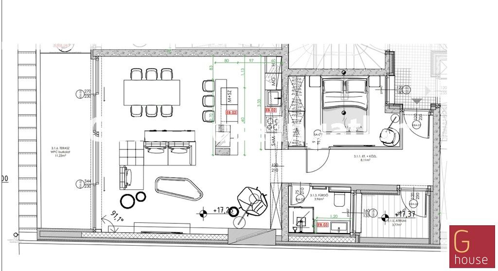 A kínált ingatlan a projekt egyik kiemelt egysége: nettó 67,04 m² alapterületű, 4. emeleti penthouse lakás, amely egy amerikai konyhás nappalit, egy külön nyíló hálószobát, egy fürdőszobát, valamint egy 10,46 m²-es teraszt foglal magában.