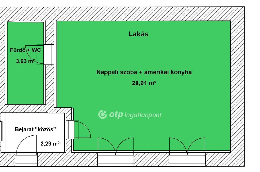 29 m2-es amerikai konyhás nappali-háló, ahol a tágas tér és a természetes fény találkozik.