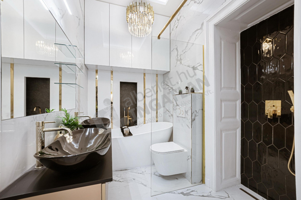 A kivitelező sokadik munkáját dicséri a nagy gonddal megtervezett dizájn, mely a nagypolgári hangulatot ötvözi a mai, modern luxus elemeivel, mely a legmagasabb színvonalon, a legigényesebb minőségben és exkluzív anyagokból készült.