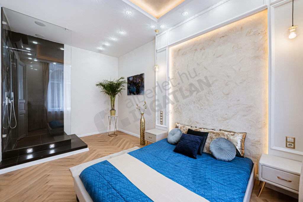 A fürdőszobán kívül (zuhanyzó, kád is van) az egyik szoba külön zuhanyzóval is rendelkezik.