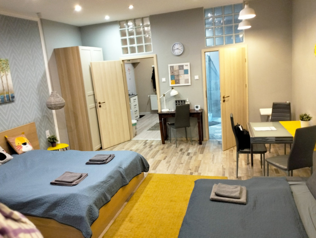 A jelenlegi elrendezés egyedülálló rugalmasságot biztosít, mivel az ingatlan két teljesen szeparált lakrészre van osztva, mindkettő saját bejárattal, fürdőszobával és konyhával rendelkezik. Ez tökéletesé teszi kiadásra, mivel így jóval több bérleti díjat generálhat! Igény szerint könnyen egybenyitható, amennyiben nagyobb térre van szüksége, mivel a két egységet csak egy befalazott ajtó választja el, amit most szekrények takarnak. A földszinti elhelyezkedés miatt az ingatlan üzleti célra is tökéletes lehet, kihasználva a Nagymező utca kiemelt gyalogos forgalmát.