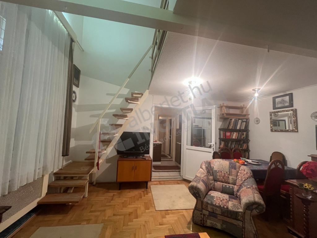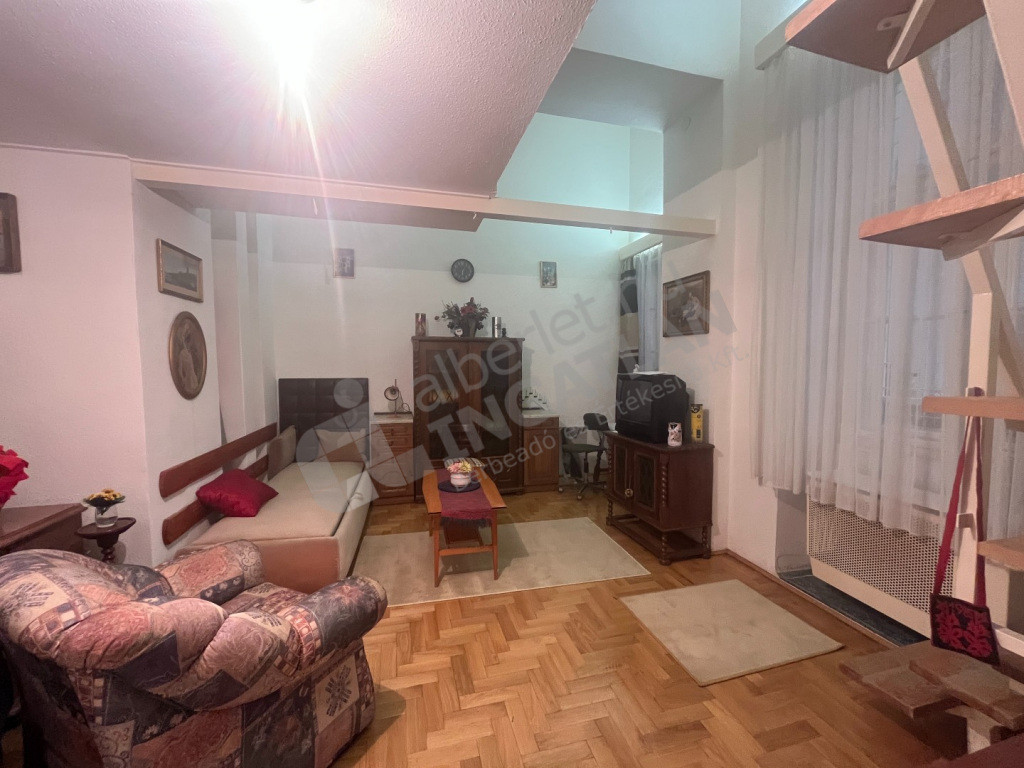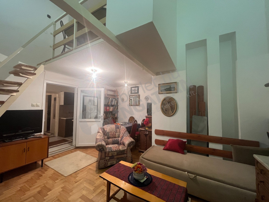 Eladó galériás lakás forgalmas, mégis rendezett belvárosi környezetben