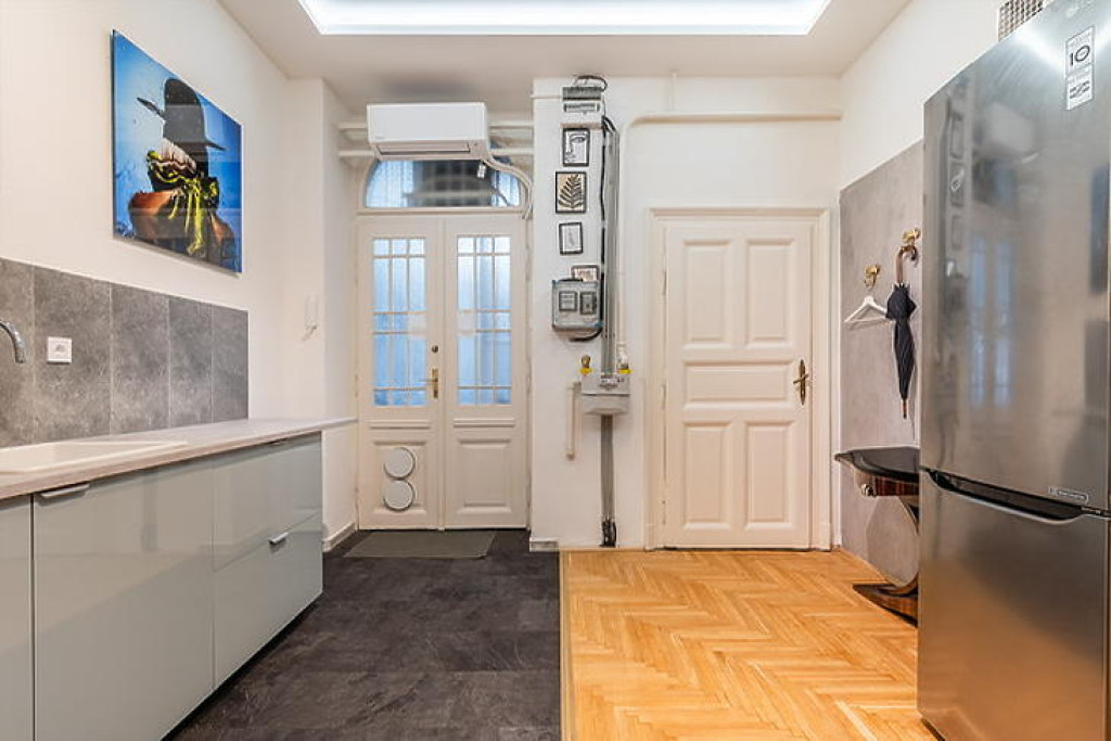 Budapest belvárosának egyik legkedveltebb utcájában, a VI. kerületi Ó utcában, eladóvá vált egy 73 négyzetméteres, 1. emeleti, kiváló állapotú lakás, amely nemcsak elhelyezkedésével, hanem elrendezésével is igazán különleges. Az ingatlan 2 tágas, világos szobával rendelkezik, amelyek egybe és külön is nyílóak – ezáltal tökéletesen alkalmazkodnak a különböző élethelyzetekhez, legyen szó otthonról, irodáról vagy vendégfogadásról. Továbbá 2 külön fürdőszoba szolgálja a lakók kényelmét, ami igazán ritka és praktikus megoldás. A lakás újszerű állapotban van, esztétikailag és műszakilag is kifogástalan. Modern burkolatok, minőségi nyílászárók, korszerű fűtésrendszer és kellemes, világos belső terek jellemzik. Az adatok tájékoztató jellegű.