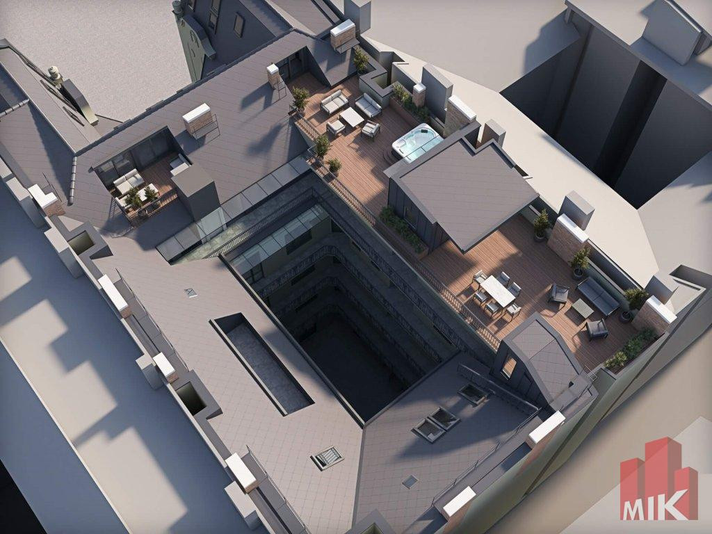 Klasszikus épület, melynek teljes körű felújítása során, a legfelső szinten, a padlástéren 4 modern, tetőteraszos okos otthon kerül kialakításra.