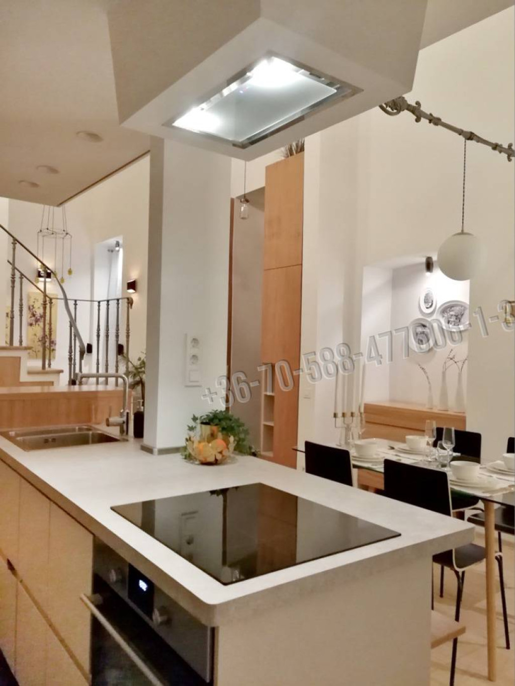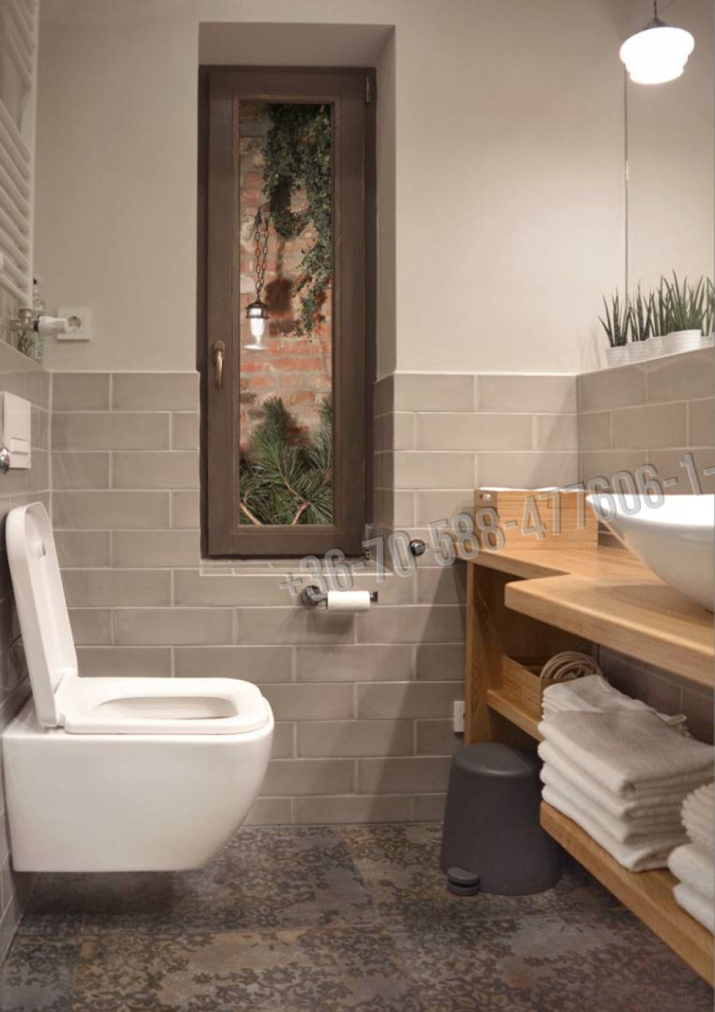 A felújítás során zuhanyzós fürdőszoba egy légtérben a WC-vel, egy önálló háztartási helyiség mosó- és szárítógéppel, valamint teljesen felszerelt konyha is kialakításra került (beépített sütő, indukciós főzőlap, mosogatógép, hűtőszekrény fagyasztóval).