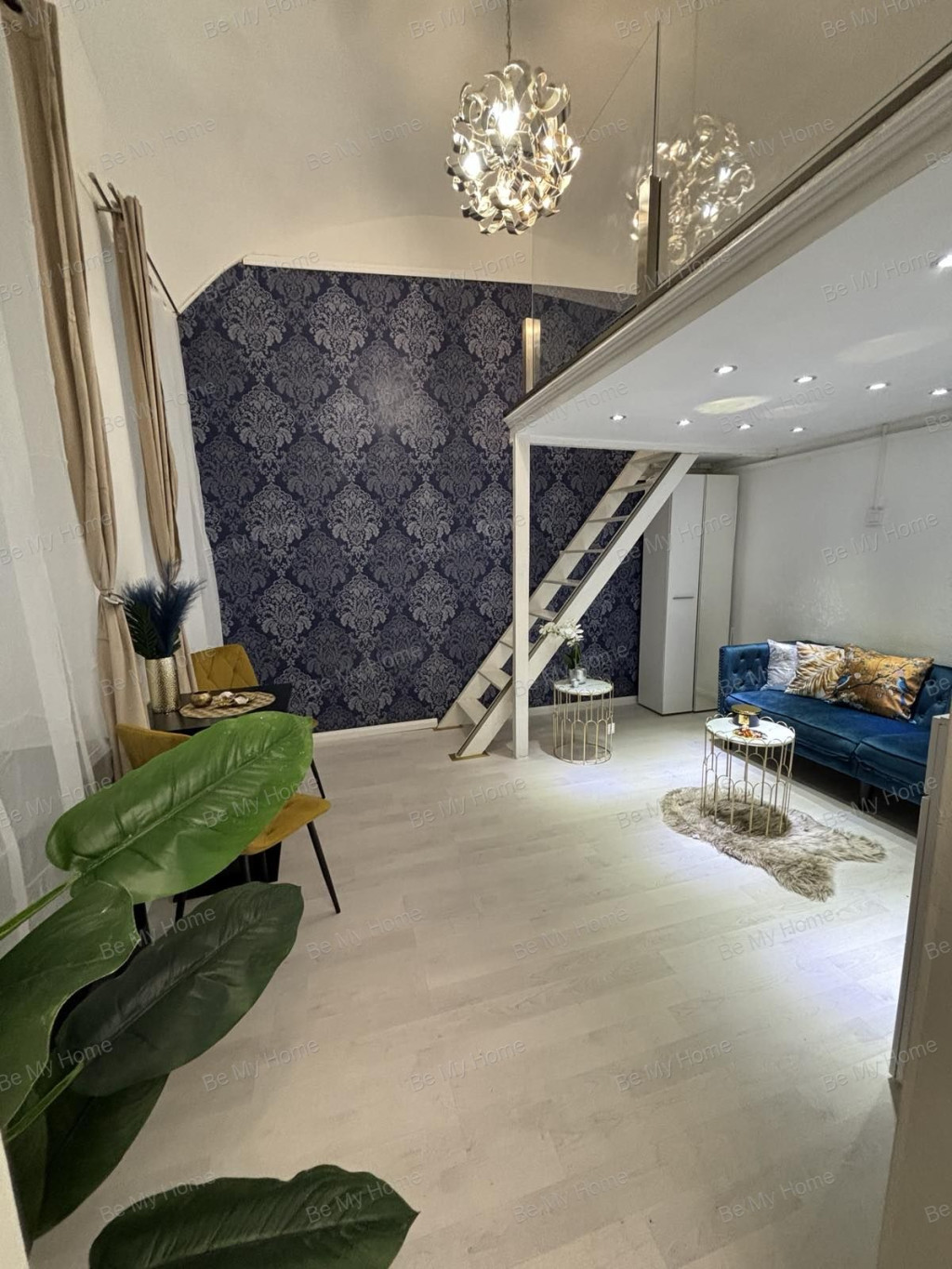 Nagy belmagasság, 8 m2 galéria, ahol elfér egy kétszemélyes ágy, és az éjjeliszekrény.
