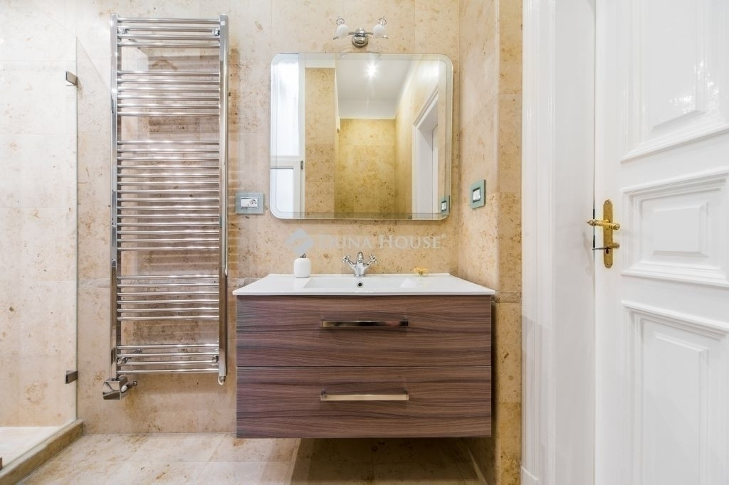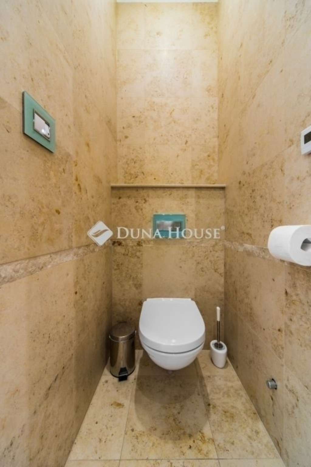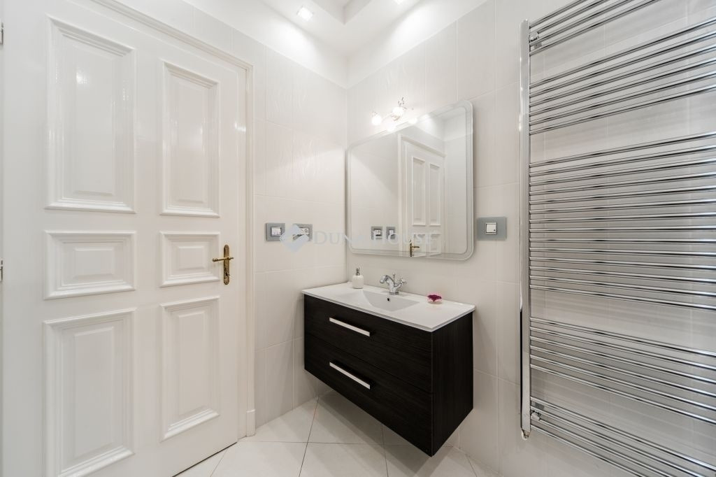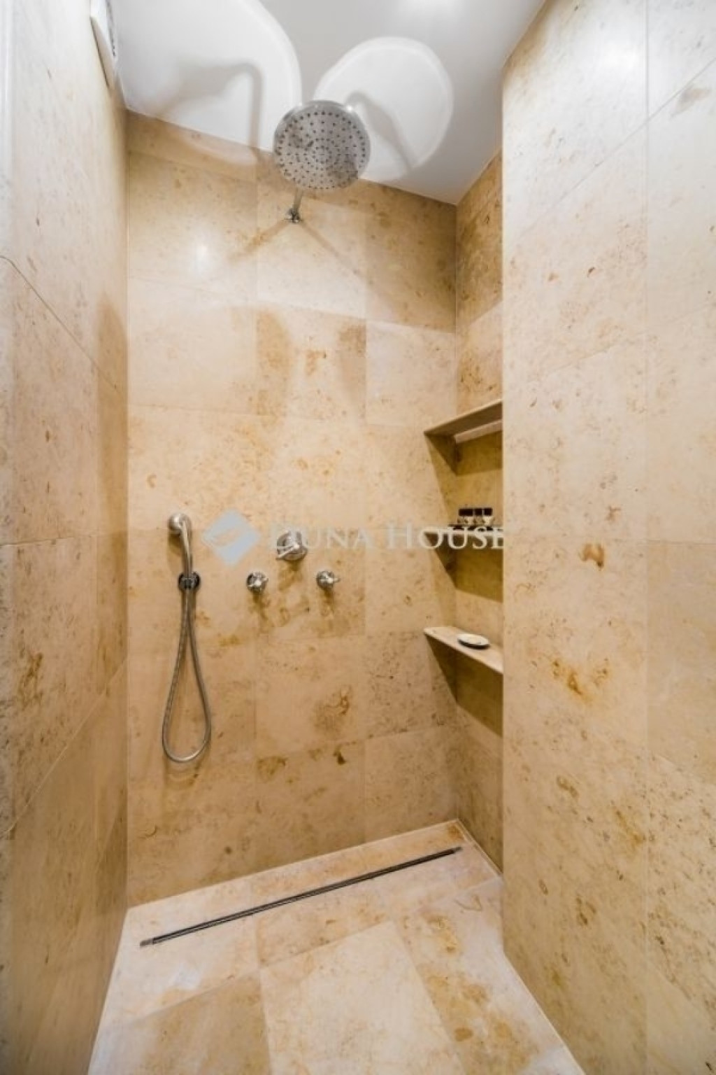 A két fürdőszoba eltérő kialakítása – kád és nagyméretű zuhanyzó – a mindennapi használat során is praktikus és kényelmes megoldást nyújt.